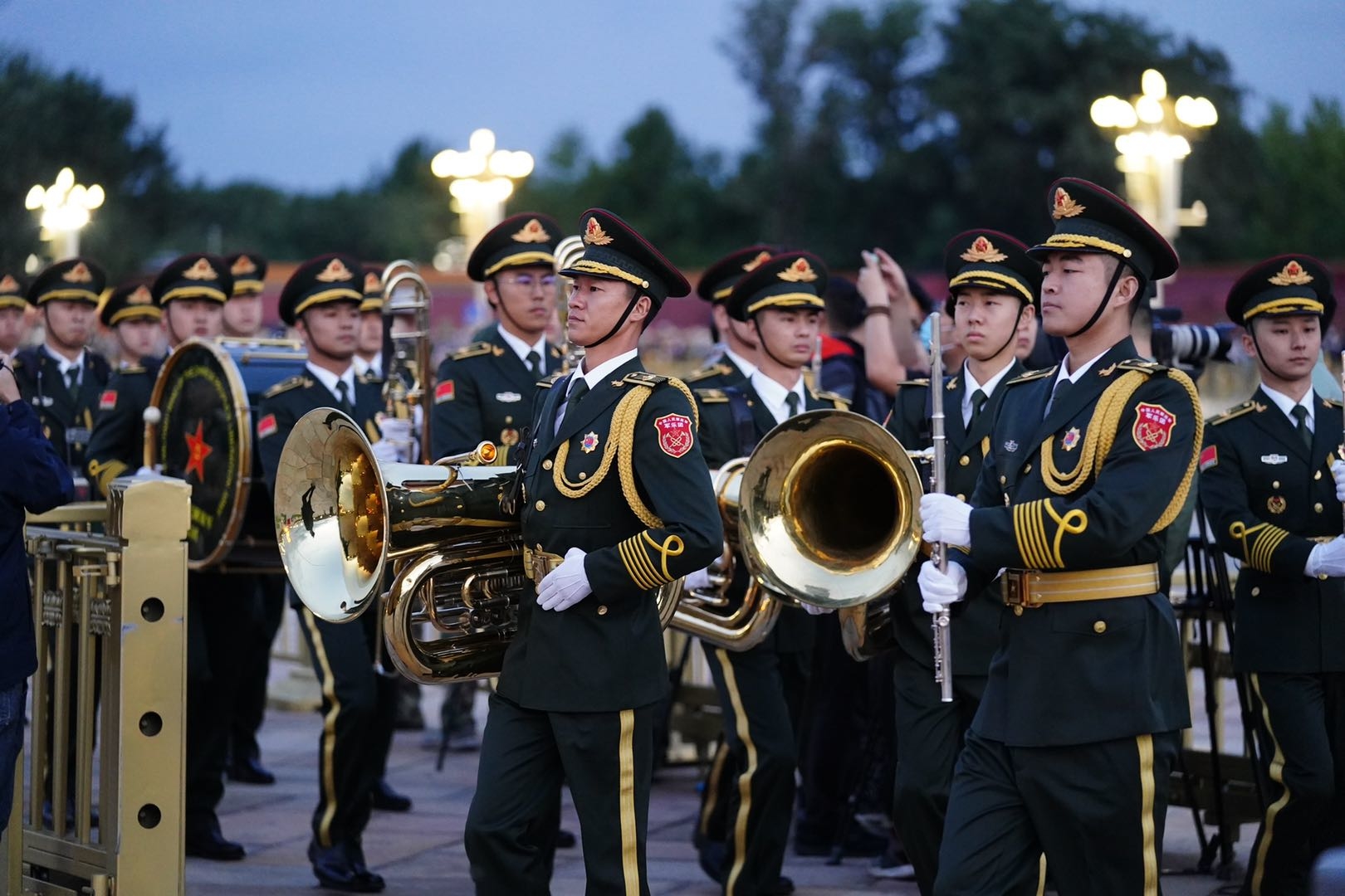 6點整,軍樂團在旗桿周邊就位。6時06分,城樓吹響升旗號角,升國旗儀式正式開始!觀眾們把手機、相機紛紛對準遠處的城樓,將這激動人心的一刻記錄下來。