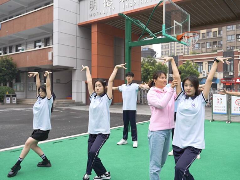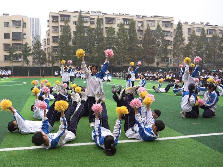 該校體育組組長(zhǎng)耿星海介紹說(shuō),學(xué)校共自主創(chuàng)新編排了四套操——廣播操、啦啦操、素質(zhì)操和禮儀操。目的就是為了培養(yǎng)學(xué)生的規(guī)范意識(shí),幫助學(xué)生樹(shù)立團(tuán)結(jié)協(xié)作、自信自立的品質(zhì),同時(shí)提高學(xué)生的身體素質(zhì),培養(yǎng)學(xué)生文明守禮的習(xí)慣。學(xué)校三個(gè)學(xué)部十六位體育老師會(huì)利用體育課、課后延時(shí)課、社團(tuán)課等時(shí)間,在進(jìn)行正常的體育教學(xué)基礎(chǔ)上,不斷探索校園體育文化特色建設(shè)之路。2009年學(xué)校健美操團(tuán)體獲得省比賽的冠軍,2013年學(xué)校啦啦操團(tuán)體獲得全國(guó)啦啦操比賽的冠軍。