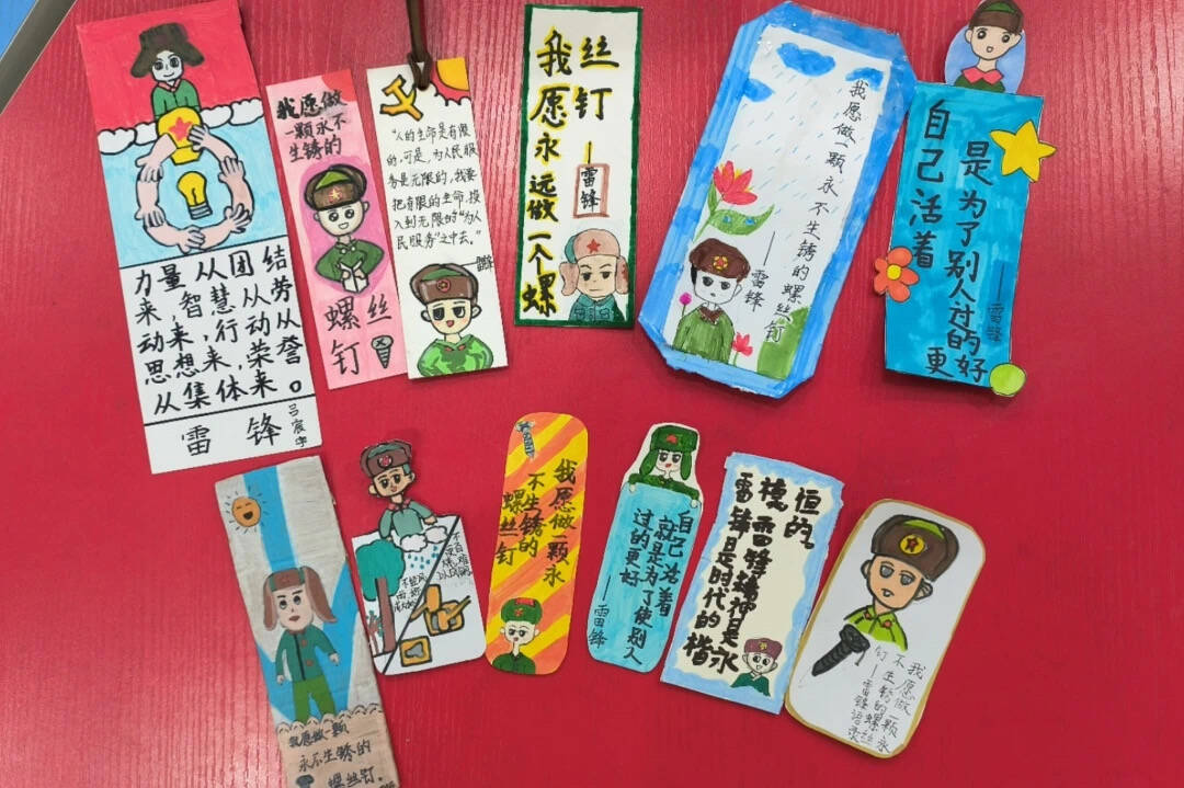 雷鋒就像一枚“螺絲釘”,有守崗盡責(zé)的“恒勁”,有奉獻為民的“熱勁”,有干事創(chuàng)業(yè)的“闖勁”。隊員們一起重溫雷鋒經(jīng)典語錄,讀懂雷鋒“永不褪色”的精神密碼,將雷鋒語錄設(shè)計制作成一枚枚精美的書簽,讓雷鋒精神代代相傳。