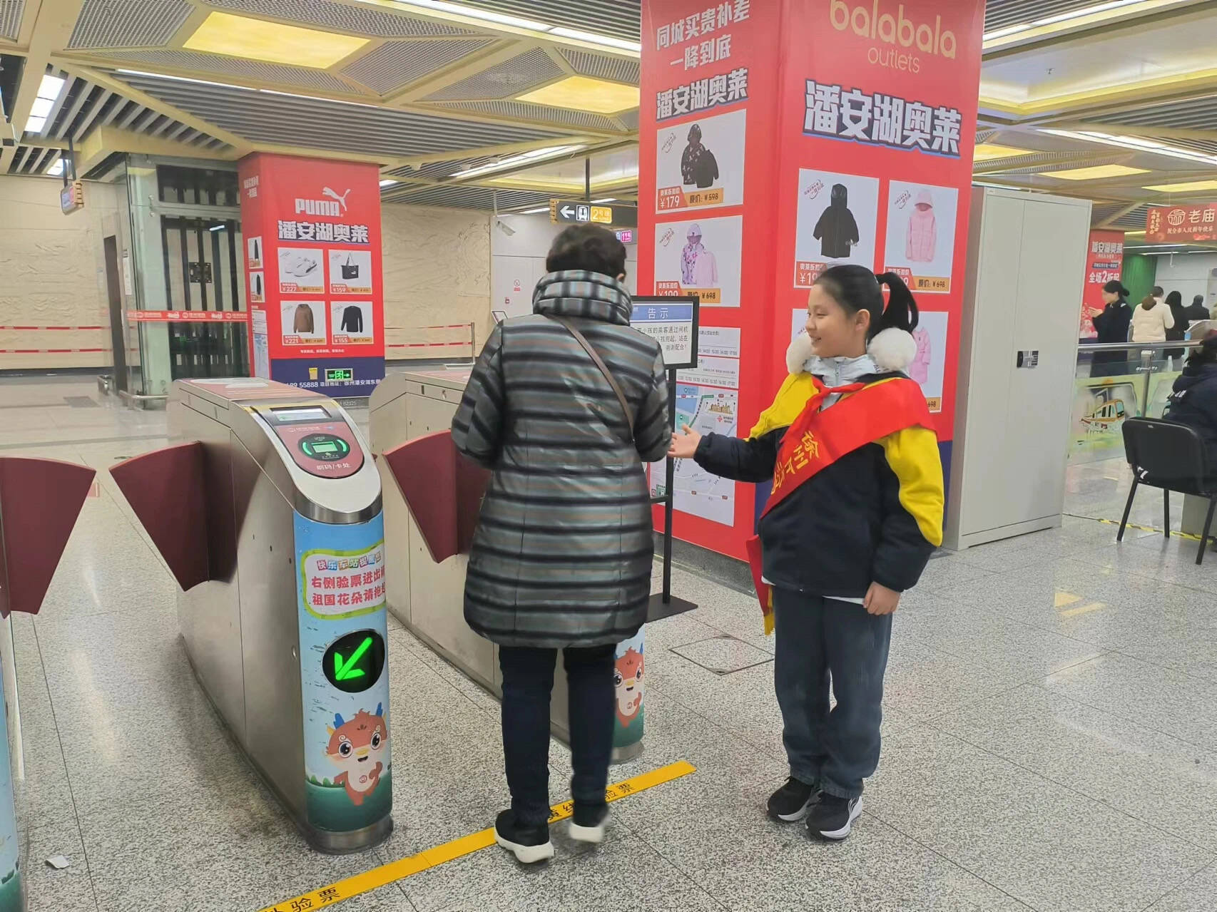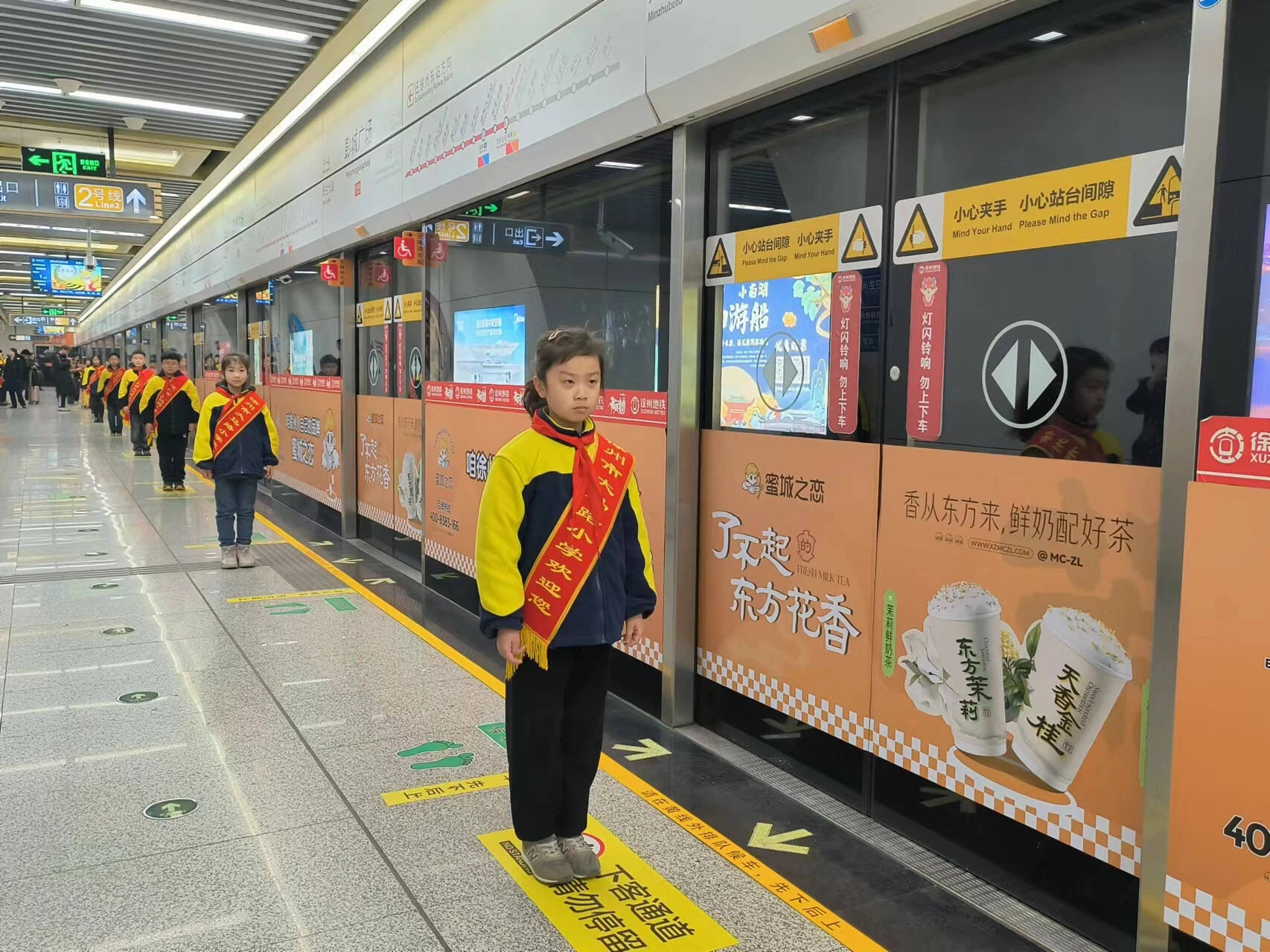 三月春風(fēng)處處暖,雷鋒精神代代傳。隊員們在大隊輔導(dǎo)員的帶領(lǐng)下,來到彭城廣場地鐵站開展“紅領(lǐng)巾學(xué)雷鋒”志愿服務(wù)活動。在上班早高峰期,隊員們在地鐵站引導(dǎo)來往人群有序乘車、進站、出站,在學(xué)習(xí)雷鋒志愿服務(wù)實踐中成長,以自己的實際行動一起向雷鋒致敬,讓雷鋒精神永放光芒。