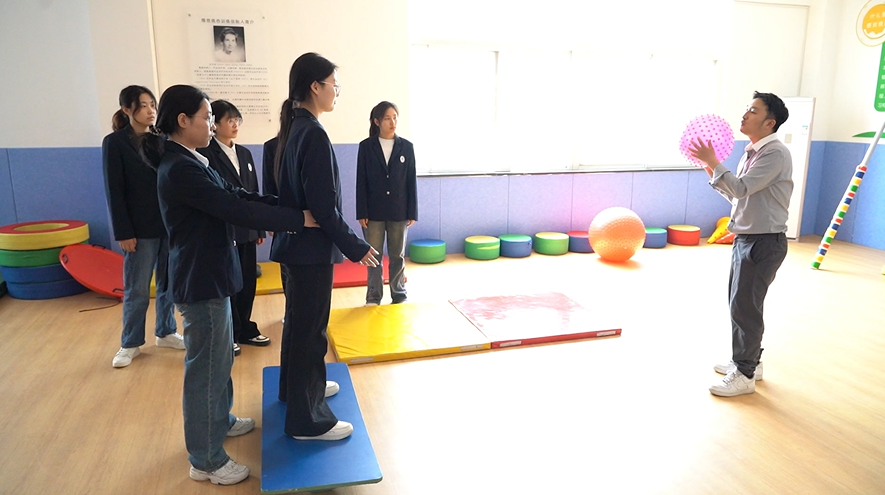徐州幼兒師范高等??茖W(xué)校學(xué)前與特殊教育學(xué)院特殊教育專業(yè)蘇晗老師正在給學(xué)生們講課隨著國家對殘疾人教育事業(yè)越來越重視,特殊教育行業(yè)發(fā)展很快,特殊兒童關(guān)愛中心是徐州幼兒師范高等??茖W(xué)校學(xué)前與特殊教育學(xué)院產(chǎn)教深度融合的一個標(biāo)志性成果。中心設(shè)有評估室、個訓(xùn)室、集體教室、感統(tǒng)訓(xùn)練室、語言治療室、音樂治療室、家長培訓(xùn)室、教學(xué)研習(xí)室等30余間專用教室,有力助推了特教專業(yè)的教學(xué)、科研、實(shí)踐、就業(yè)等領(lǐng)域的貫穿融合。在感統(tǒng)功能教室,師生們借助豐富的器材,開展教育培訓(xùn)實(shí)踐。通過這些訓(xùn)練可以幫助幼兒提升視覺、觸覺、前庭覺和本體覺等感覺功能。特殊教育專業(yè)學(xué)生陳藝菲說,從迷茫到了解到走進(jìn)特殊兒童這個群體,然后發(fā)現(xiàn)這些孩子需要更多的愛與關(guān)懷,堅(jiān)定了她以后走向特殊兒童教育與康復(fù)這個職業(yè),奉獻(xiàn)出她的一份力量。學(xué)前與特殊教育學(xué)院王清風(fēng)院長介紹,借助特殊教育專業(yè)的優(yōu)勢,學(xué)校建了特殊兒童關(guān)愛中心,既是面向校外的兒童康復(fù)機(jī)構(gòu),又是特殊教育專業(yè)的實(shí)訓(xùn)基地,做到產(chǎn)、學(xué)、研、訓(xùn)一體化。徐州幼兒師范高等專科學(xué)校以高質(zhì)量發(fā)展為核心,深入開展綜合改革,綜合競爭力居全國師范類專科院校首位。學(xué)校著力培養(yǎng)人文素養(yǎng)好、有一技之長、社會責(zé)任感強(qiáng)的高素質(zhì)實(shí)用型技能人才,全力建設(shè)“學(xué)科專業(yè)樣板、人才培育中心、產(chǎn)教融合標(biāo)桿”,奮力打造康養(yǎng)康育特色名校。