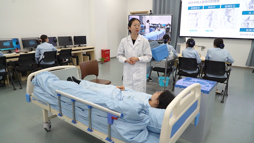 健康養(yǎng)老服務(wù)是學(xué)校重點(diǎn)發(fā)展的四大專業(yè)群之一。4月15日,記者走進(jìn)徐州幼兒師范高等??茖W(xué)校健康服務(wù)與管理學(xué)院,一堂老年人常用照護(hù)技術(shù)專業(yè)課程正在進(jìn)行。徐州幼兒師范高等專科學(xué)校康管學(xué)院專業(yè)教師田苗正在給學(xué)生上課據(jù)悉,目前全國60歲以上老人有2.9億。截至2022年底,徐州市60歲以上老人達(dá)到189萬。徐州幼兒師范高等??茖W(xué)校提早布局康養(yǎng)專業(yè)。學(xué)校高度重視產(chǎn)教融合,理實(shí)結(jié)合,聘請產(chǎn)業(yè)教授、產(chǎn)業(yè)導(dǎo)師進(jìn)行指導(dǎo)。徐州幼兒師范高等??茖W(xué)校康管學(xué)院產(chǎn)業(yè)導(dǎo)師王正介紹,在徐州幼??倒軐W(xué)院從事實(shí)踐技能授課,可以把養(yǎng)老機(jī)構(gòu)實(shí)踐技能帶到學(xué)院教授給學(xué)院的學(xué)生,有效地和康管學(xué)院的專職教師進(jìn)行互補(bǔ)。