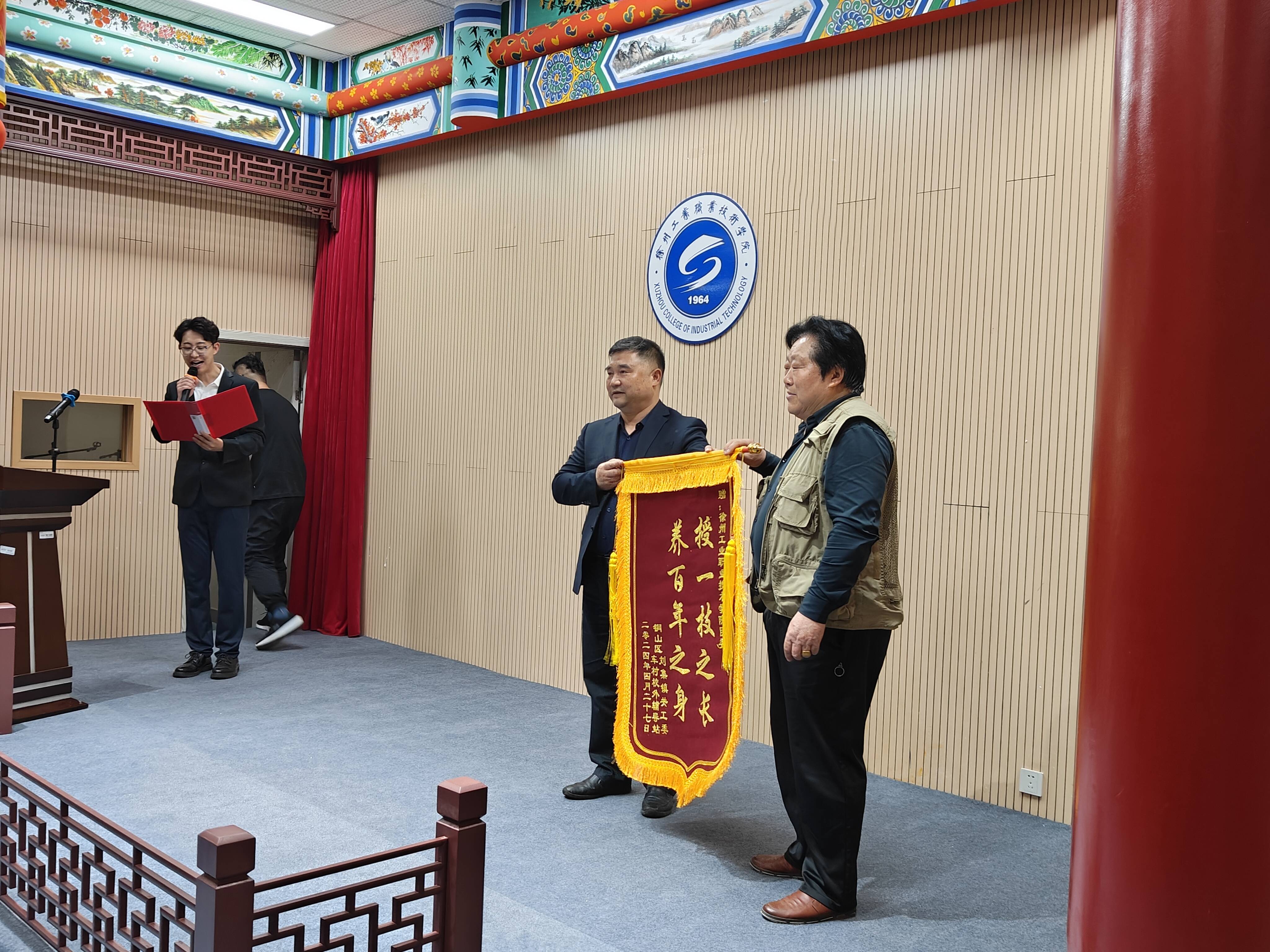 銅山區(qū)劉集鎮(zhèn)車村村校外輔導(dǎo)站向徐州工業(yè)職業(yè)技術(shù)學(xué)院贈(zèng)送錦旗