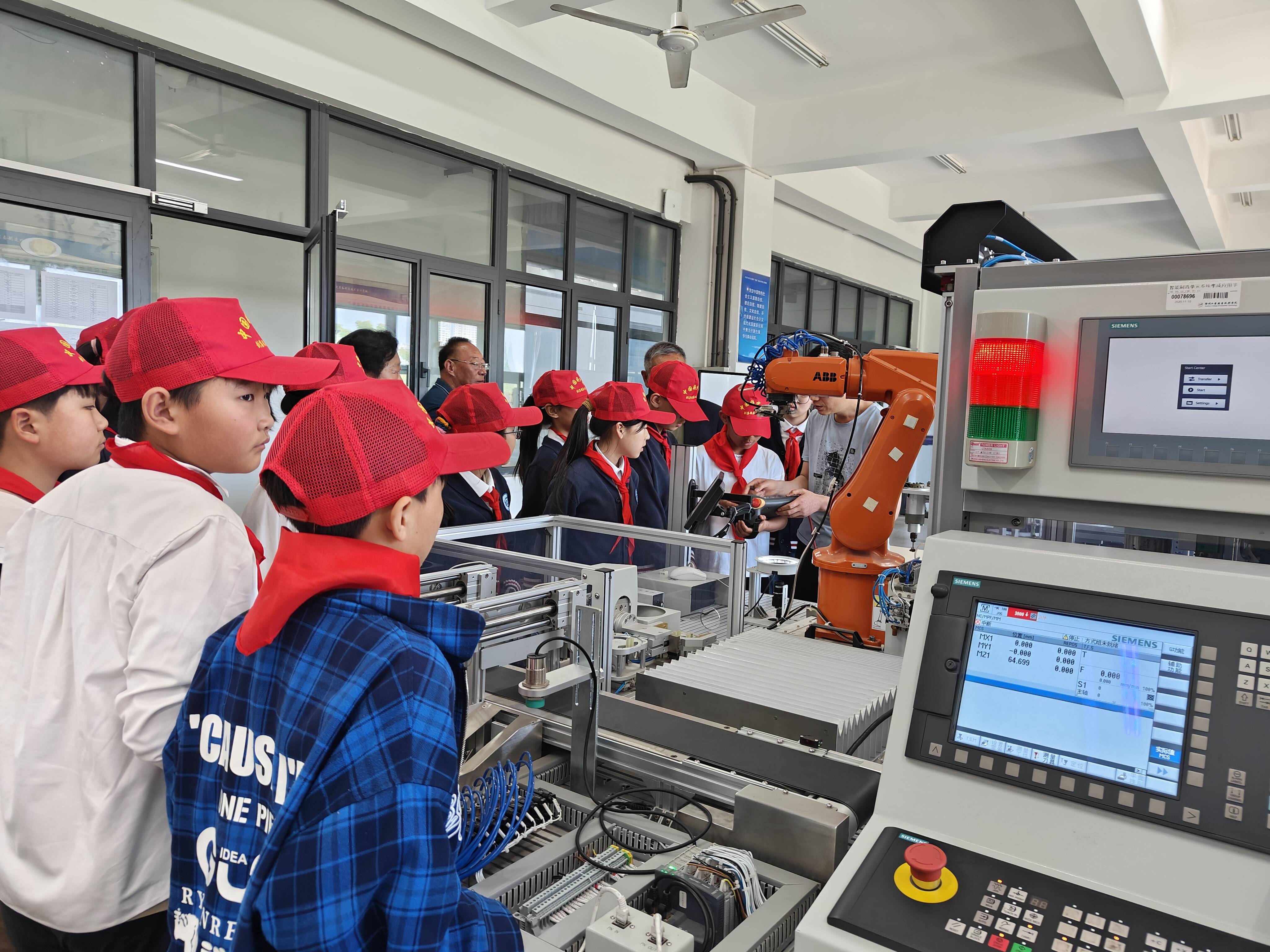 銅山區(qū)劉集鎮(zhèn)車村校外輔導(dǎo)站的同學(xué)們參觀機(jī)電學(xué)院重大裝備實(shí)訓(xùn)基地
