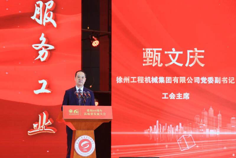 兄弟院校代表、江蘇師范大學(xué)黨委書(shū)記方忠、徐州工程機(jī)械集團(tuán)有限公司黨委副書(shū)記、工會(huì)主席甄文慶先后分別致辭。