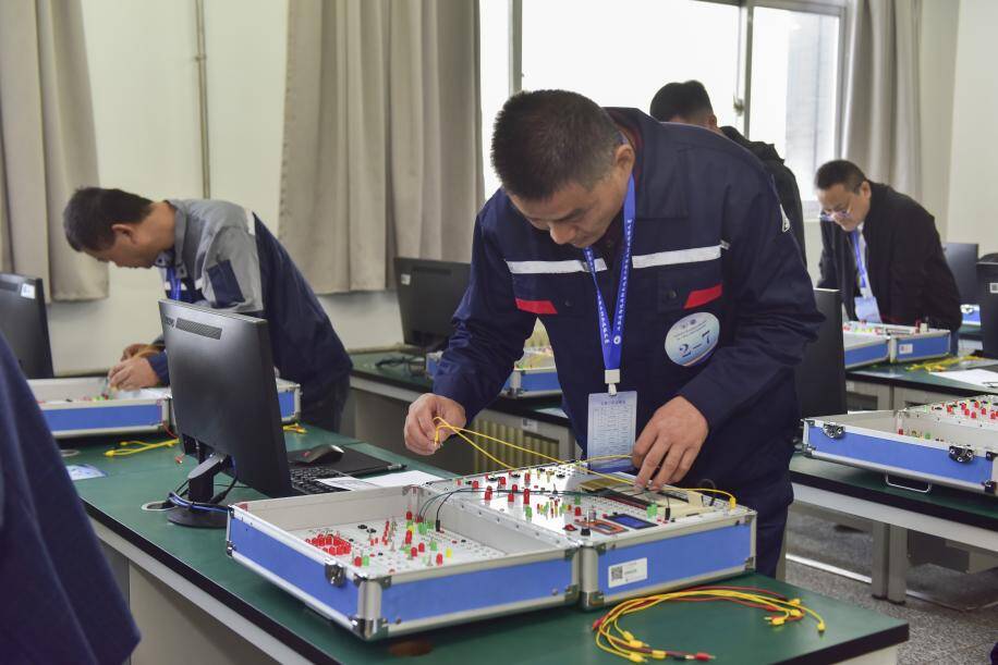 本次競賽由理論測試和實操技能兩部分組成,實操技能包含PLC編程及接線實操,全面考察參賽選手的專業(yè)理論功底和技能水平。競賽中,選手們?nèi)褙炞?,以飽滿的精神、嫻熟的技能,有條不紊地完成各項操作。他們奮力拼搏,賽出了風(fēng)格,賽出了水平,充分展現(xiàn)了后勤職工勤于鉆研、愛崗敬業(yè)、精益求精的工匠精神。