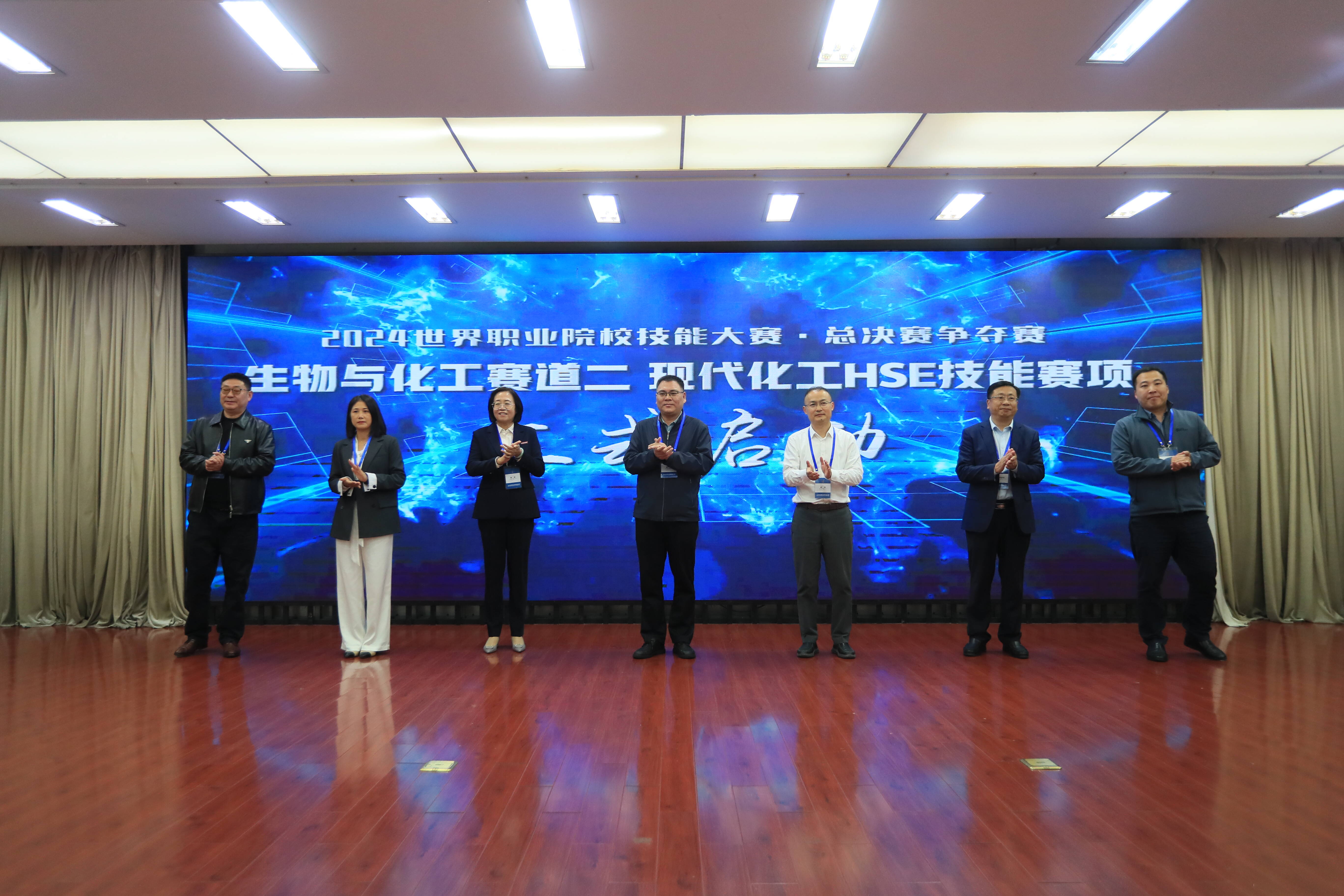 開幕式上,裁判員代表和參賽選手代表莊嚴宣誓。全國石油和化工職業(yè)教育教學(xué)指導(dǎo)委員會秘書長辛?xí)?、江蘇省教育廳職業(yè)教育處副處長徐照民、徐州工業(yè)職業(yè)技術(shù)學(xué)院黨委書記劉瑩等7位與會嘉賓共同點亮啟動裝置,宣布2024年世界職業(yè)院校技能大賽總決賽爭奪賽生物與化工賽道二(現(xiàn)代化工HSE技能賽項)正式啟動。