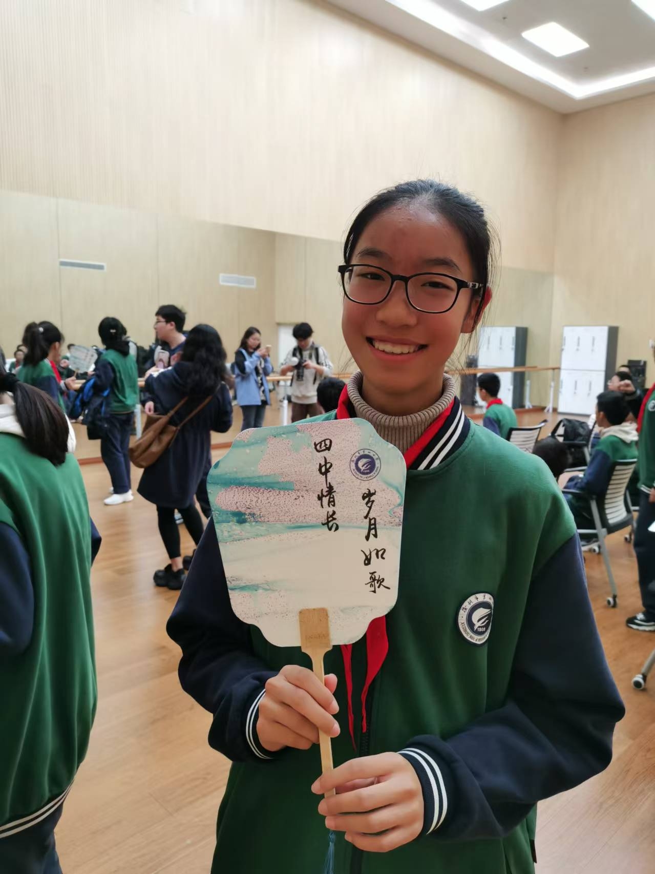 工作人員詳細介紹了直播車的工作流程,同學們聽得津津有味,對廣電技術(shù)的先進性和實用性有了更深刻的認識。在漆扇制作環(huán)節(jié),同學們仔細聆聽非遺知識,小心翼翼地渲染、上色,最終完成了一把把精美的學校專屬漆扇。在領(lǐng)略傳統(tǒng)文化魅力的同時,增強了文化自信和民族自豪感。