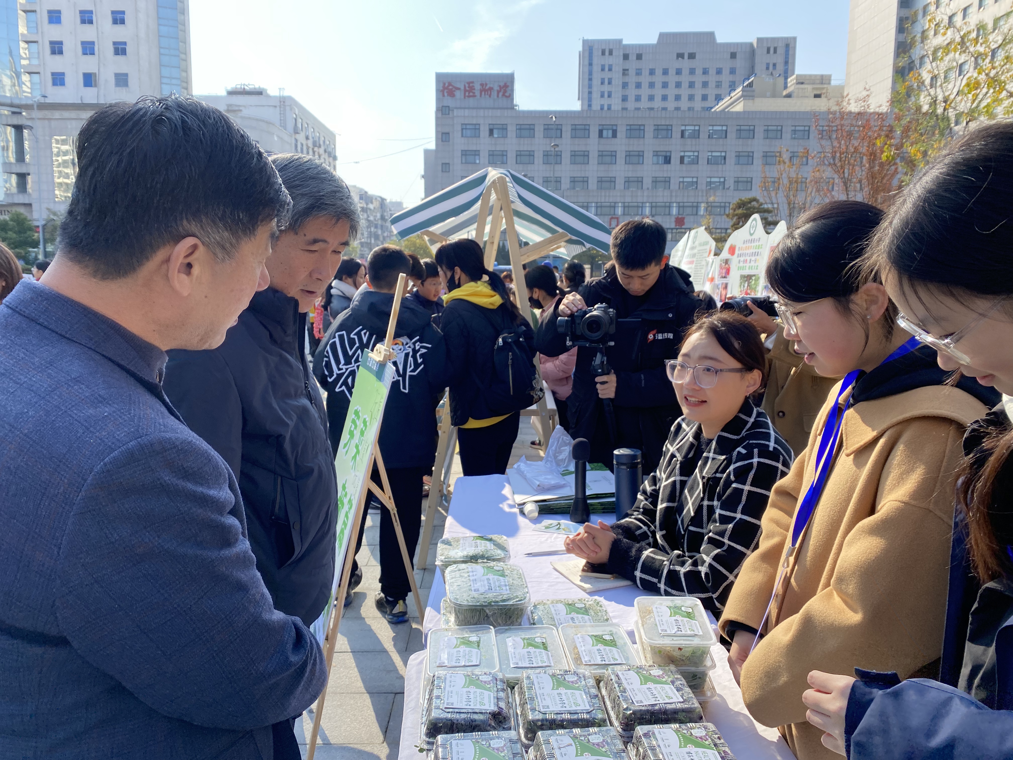 “這邊是學(xué)生正在售賣的卷餅等他們認(rèn)為能夠代表徐州特色的食品,還有我們學(xué)生自己設(shè)計(jì)的文創(chuàng)社的展品,這邊就是孩子們自己設(shè)計(jì)的海報(bào),我們就想讓學(xué)生站在舞臺(tái)的中央,讓他們?nèi)⑴c生活中的實(shí)踐?!毙熘菔械谌逯袑W(xué)帶隊(duì)教師高亞東說。
