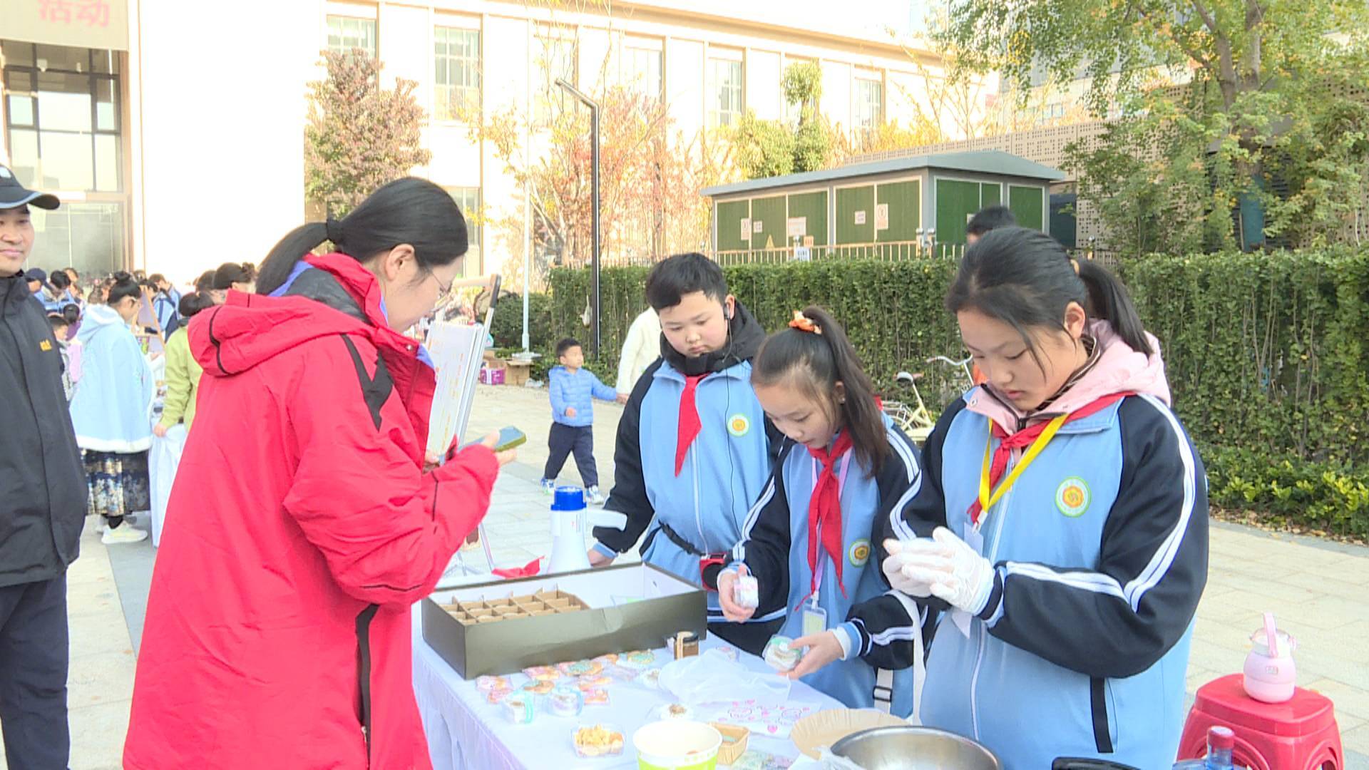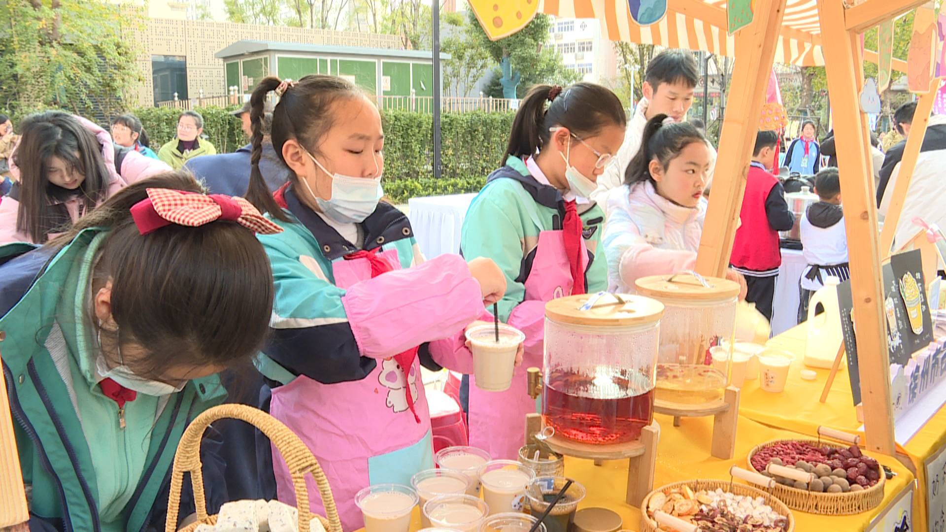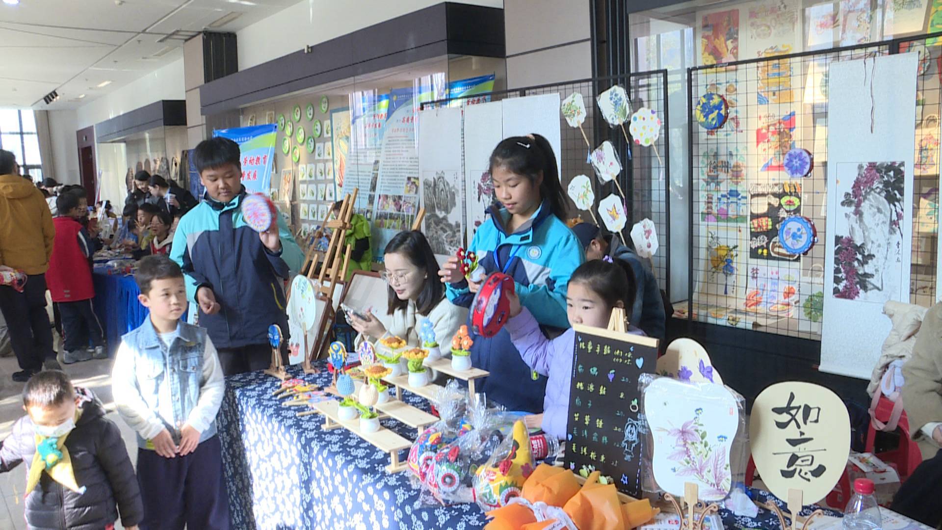 開幕式后,一場(chǎng)別開生面的“趕集活動(dòng)”吸引了大批市民現(xiàn)場(chǎng)觀摩互動(dòng)。其中,徐州市光榮巷小學(xué)的“天工開物”工坊、邳州市南京路小學(xué)的彩陶韻、新沂市棋盤中學(xué)的中藥茶飲、銅山實(shí)驗(yàn)小學(xué)的尋味四季、萬科城民主小學(xué)的漢風(fēng)游戲、徐州市第三十五中學(xué)的卷餅、農(nóng)文產(chǎn)品售賣……這里匯聚了徐州市中小學(xué)生勞動(dòng)課程的豐碩成果。從舌尖上的美食到指尖上的非遺作品,從充滿創(chuàng)意的文創(chuàng)產(chǎn)品到飽含深情的字畫作品,每一件作品都凝聚著孩子們的辛勤汗水與智慧結(jié)晶。
