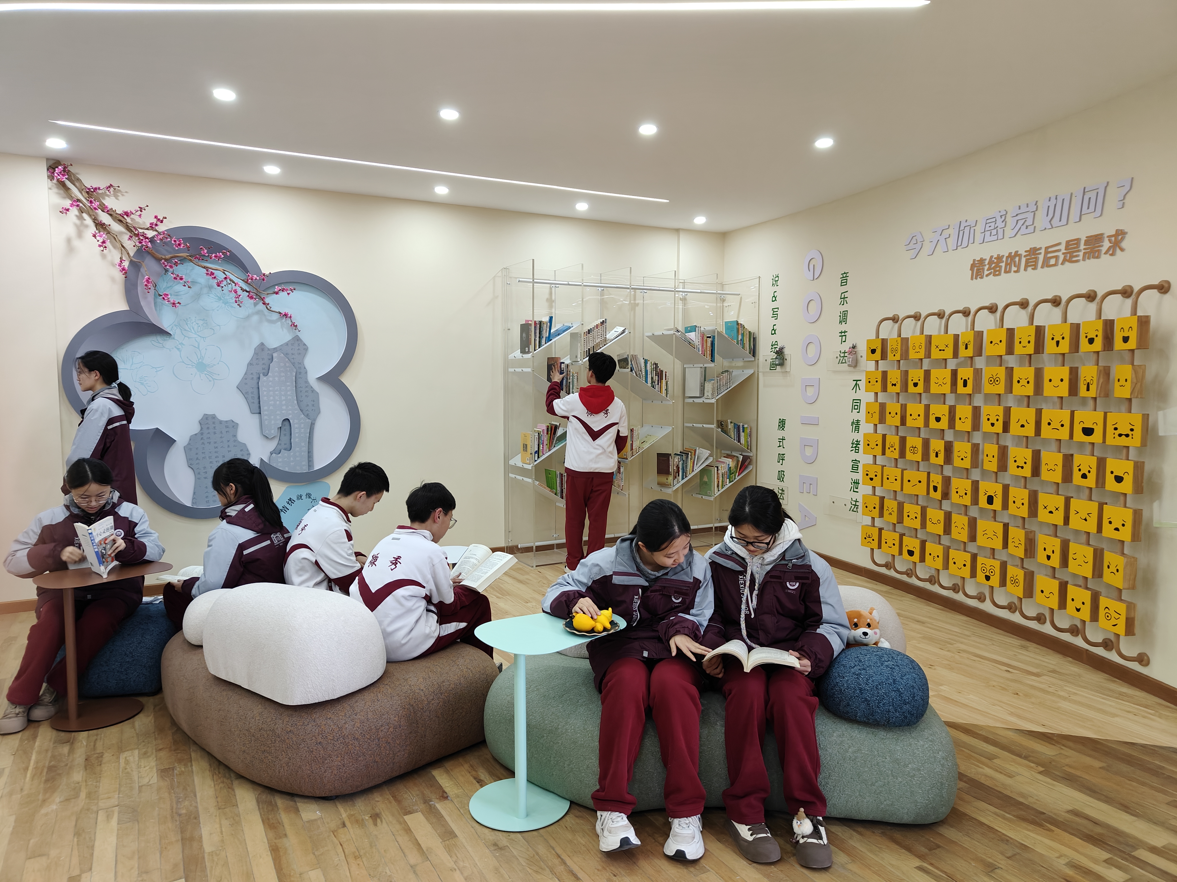 據(jù)徐州市擷秀初級中學(xué)心理健康發(fā)展中心主任耿曉晨介紹,為了全面落實好“關(guān)愛學(xué)生心理健康,提升學(xué)生心理品質(zhì)”這一目標(biāo),學(xué)校全新升級打造了心理健康發(fā)展中心,并命名為“桃花源”,希望以東方美學(xué)的意境和建筑風(fēng)格,打造平易舒緩的氛圍,讓學(xué)生們以輕松舒適的情緒來這里學(xué)習(xí)、放松或者進(jìn)行心理輔導(dǎo)。