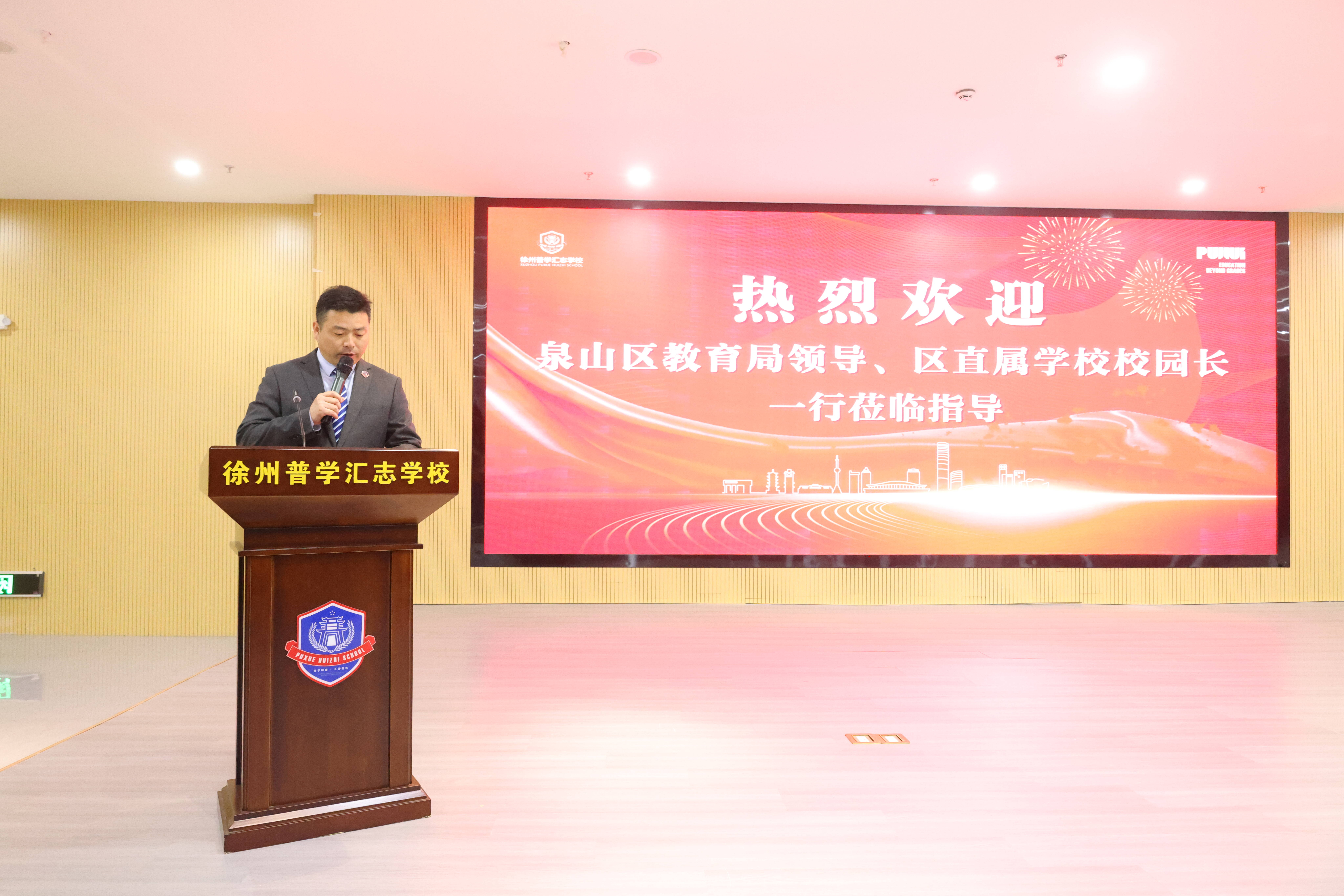 泉山區(qū)教育局黨委書記、局長喬文雯以及全區(qū)相關(guān)學(xué)校負(fù)責(zé)人參加活動。徐州普學(xué)匯志學(xué)校董事長時宏維、校長張傳軍陪同考察。