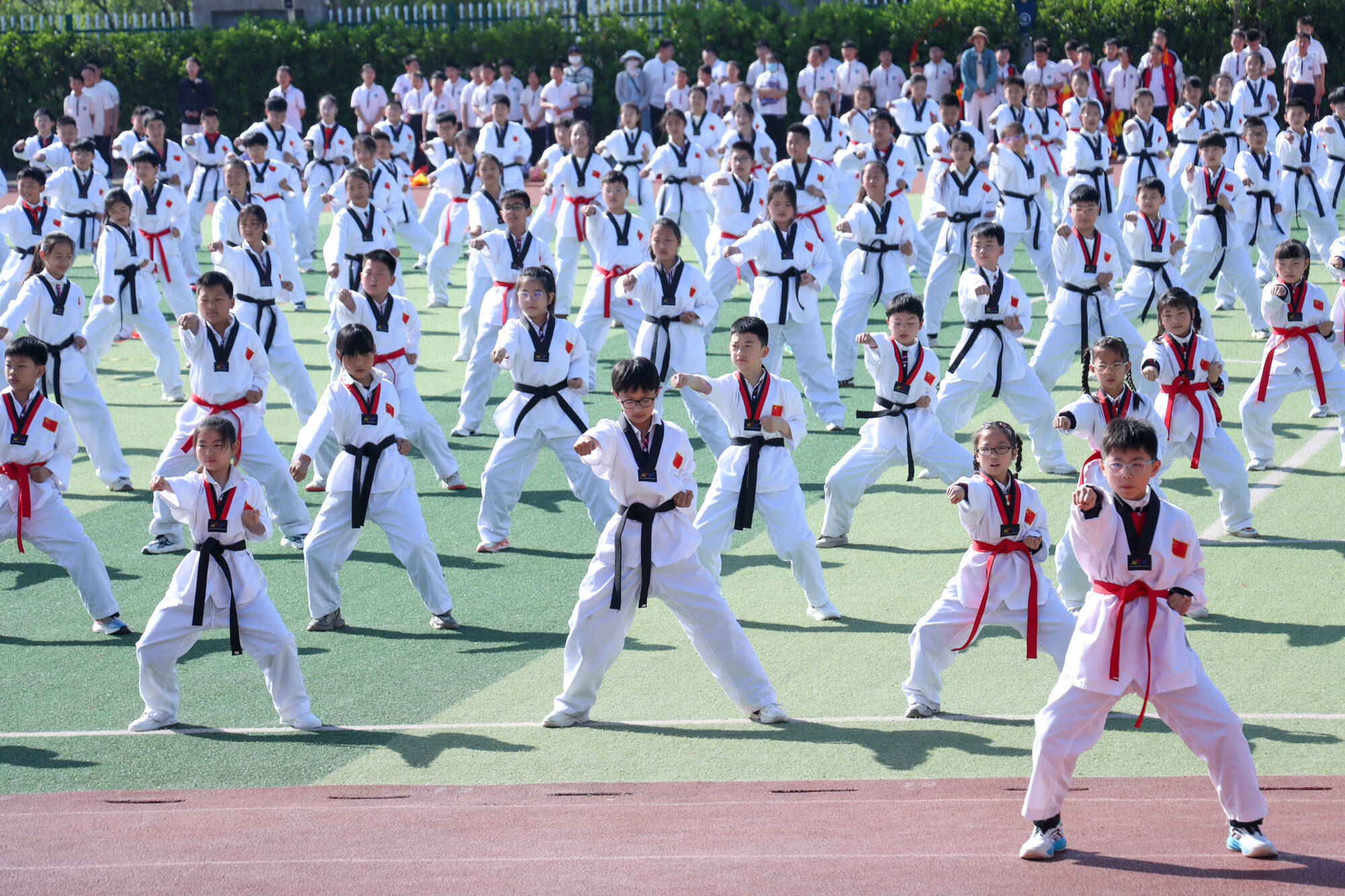 現(xiàn)場會(huì)在徐州市長安路學(xué)校舉行。活動(dòng)伊始,長安路學(xué)校四年級(jí)全體學(xué)生以一場氣勢(shì)磅礴的跆拳道操拉開活動(dòng)序幕。學(xué)生們身著統(tǒng)一訓(xùn)練服,動(dòng)作剛勁有力、口號(hào)響徹云霄,踢腿、揮拳、劈掌一氣呵成,展現(xiàn)出新時(shí)代青少年昂揚(yáng)向上的精神風(fēng)貌。跆拳道操不僅強(qiáng)健體魄,更通過“禮儀、廉恥、克己”的武道文化涵養(yǎng)學(xué)生品格,是體教融合的生動(dòng)實(shí)踐。