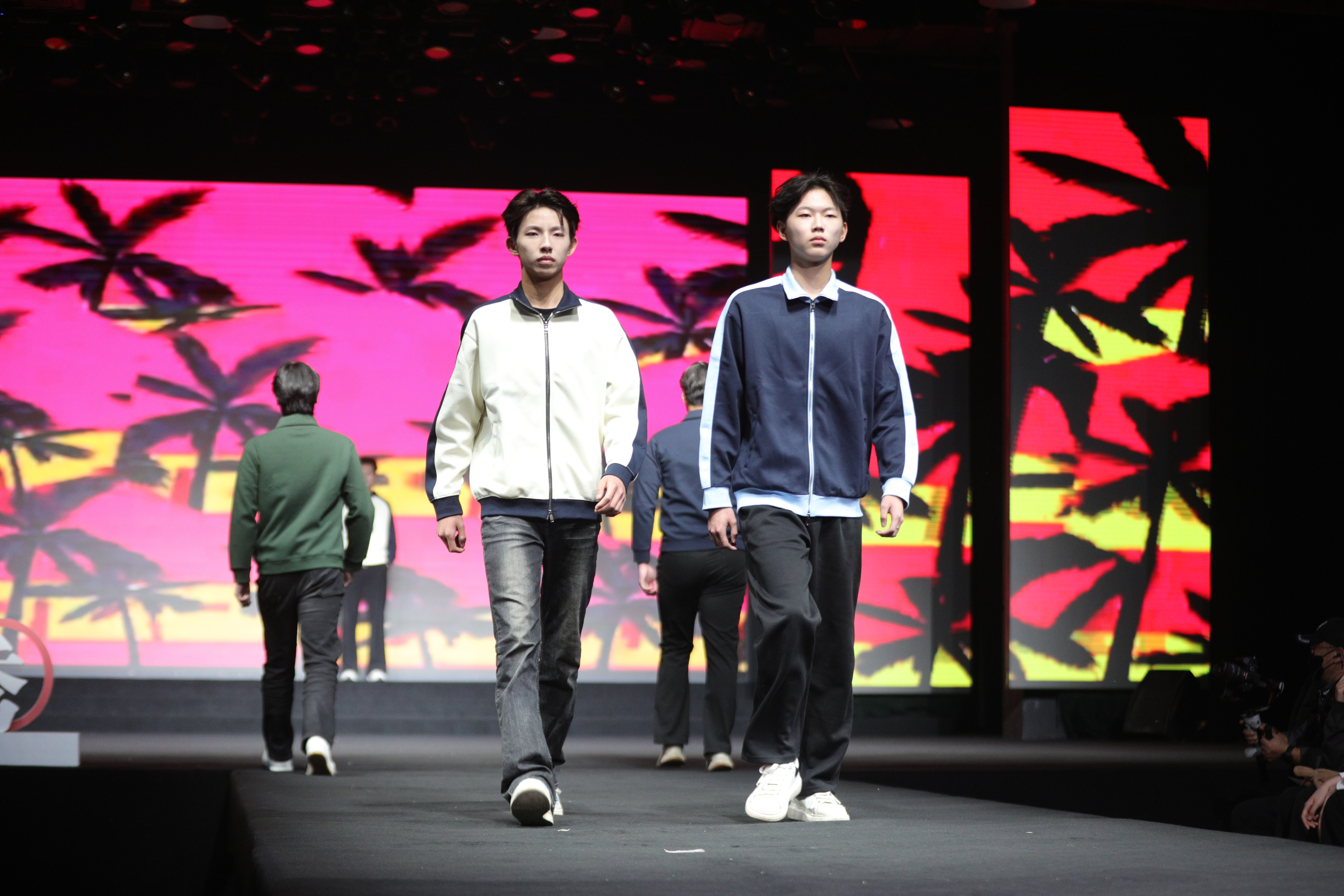 本次發(fā)布會以“彭潮”為主題,寓意徐州本土文化與現(xiàn)代時尚的碰撞。江蘇模特藝術(shù)學(xué)校時尚表演與傳播專業(yè)的學(xué)生們化身T臺主角,演繹了由知名設(shè)計師品牌臻品匯、奮斗兄弟等定制的高級成衣系列。從多巴胺炫色的校服到前衛(wèi)創(chuàng)新的潮流設(shè)計,模特們以專業(yè)的臺步、精準(zhǔn)的表現(xiàn)力,展現(xiàn)了扎實(shí)的職業(yè)技能和藝術(shù)修養(yǎng)。