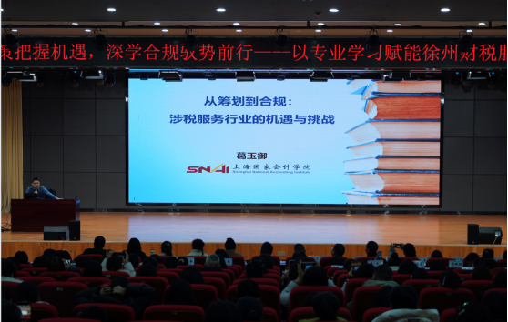 徐州市高端財(cái)稅人員稅收合規(guī)與政策實(shí)踐應(yīng)用報(bào)告會(huì)在江蘇省徐州經(jīng)貿(mào)高等職業(yè)學(xué)校舉行