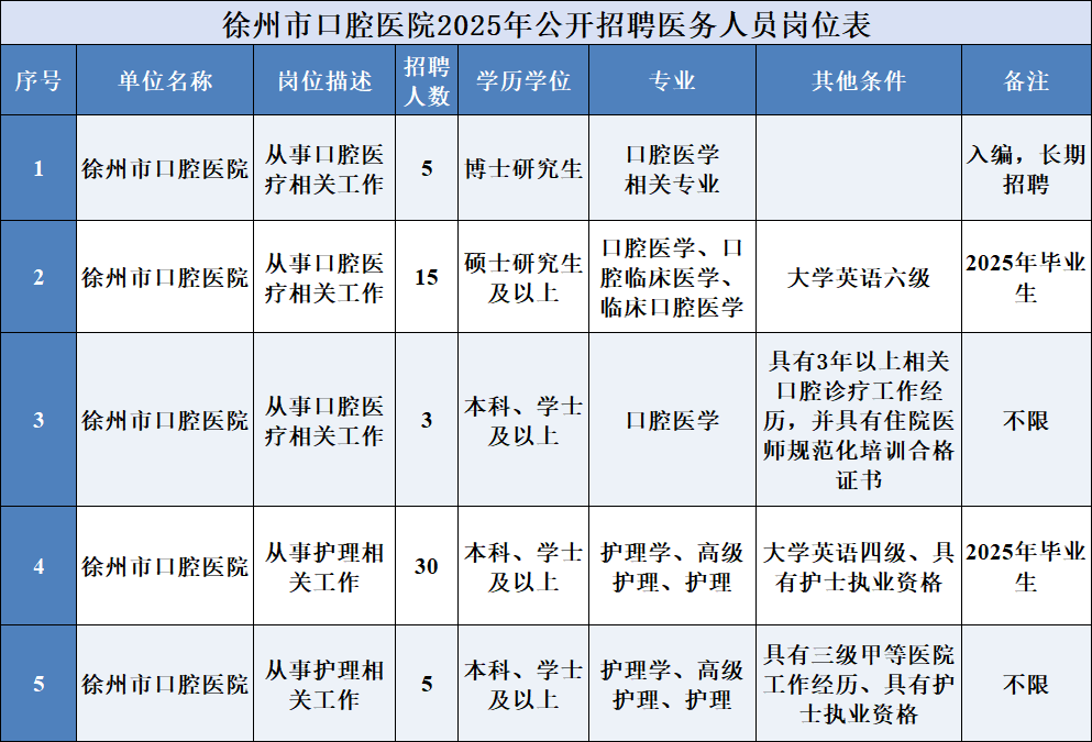 徐州醫(yī)科大學(xué)附屬口腔醫(yī)院(徐州市口腔醫(yī)院)2025年公開招聘公告