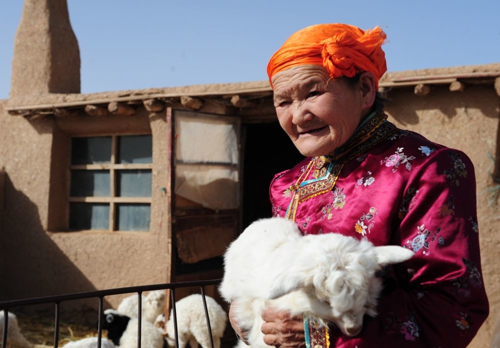 △2009年2月13日,都貴瑪在牧區(qū)的家里照看小羊羔。新華社記者 任軍川 攝?