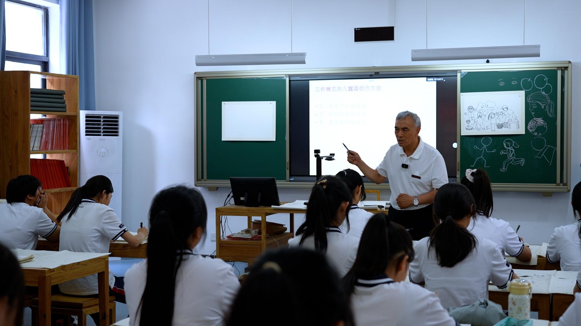 18歲的朱永第一次站在講臺上,手心已經(jīng)攥出了汗,可無論如何講構(gòu)圖、講筆觸,臺下的孩子們依然聽不懂,有兩個女孩甚至因為不會畫急哭了。這節(jié)課讓年輕的朱永意識到只會畫畫當不了一名合格的老師,要先學會教書育人的方法。