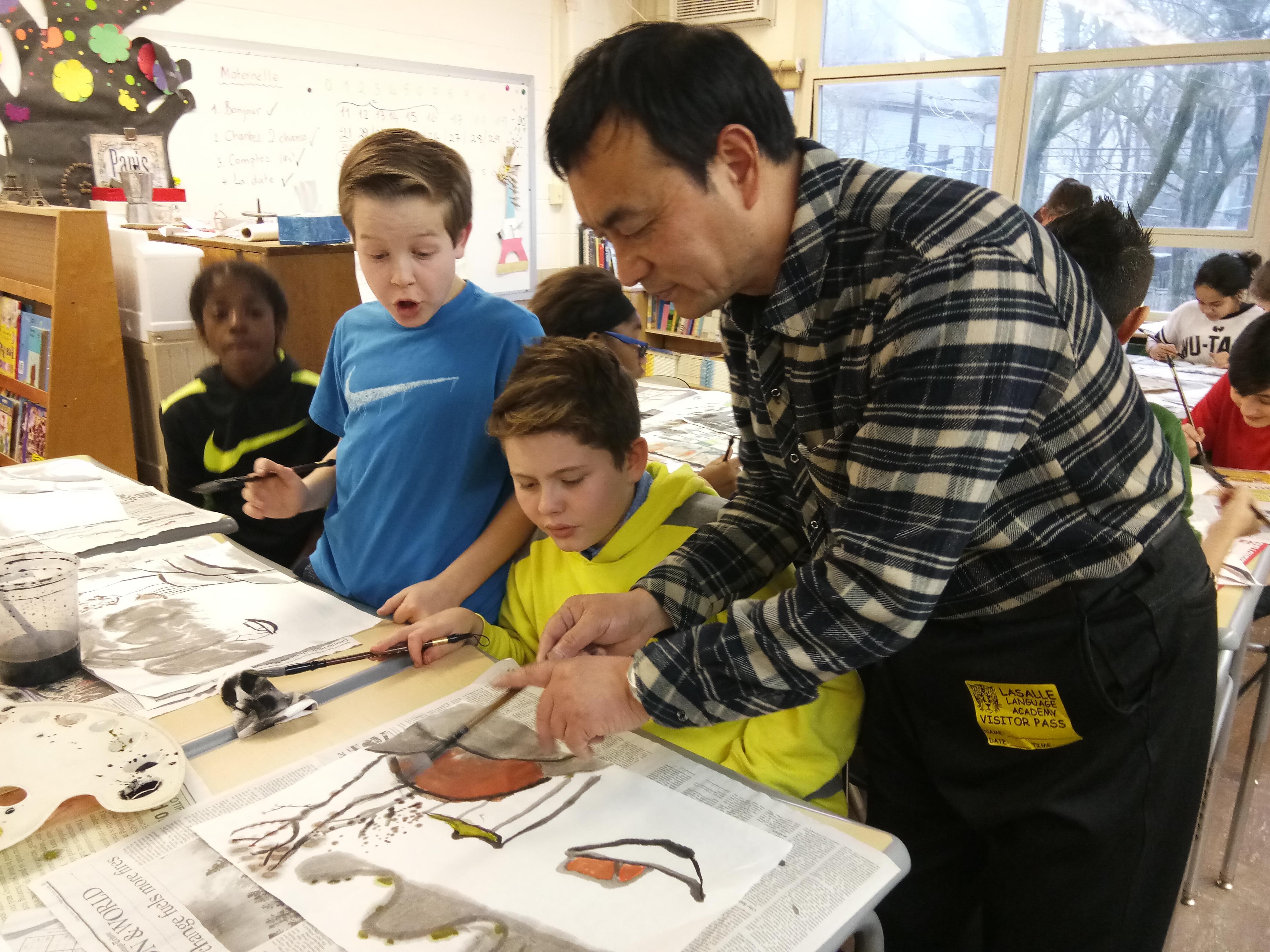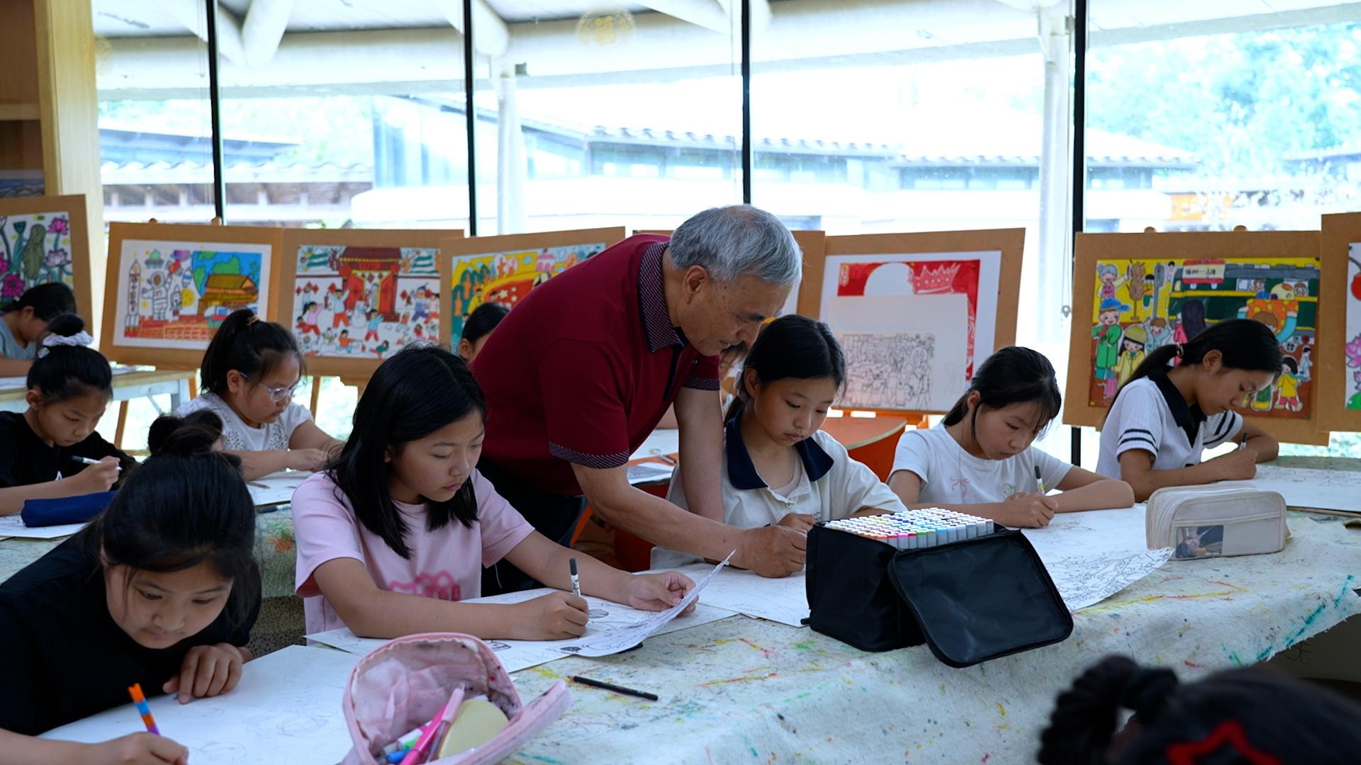 今年是朱永退休的第二年,每個周六、周日,他都會來到鯉魚山莊免費教周邊孩子畫畫。