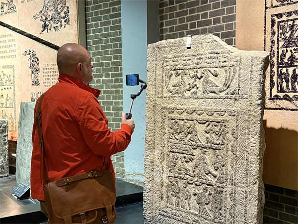 海外博主參觀“會(huì)說(shuō)話的漢像畫(huà)石” 攝影 陳小雨