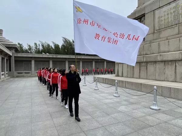 寒風凜冽,蒼翠巍峨,更顯得淮海戰(zhàn)役烈士紀念塔莊嚴肅穆!大家懷著無比崇敬與懷念的心情,早早地來到了這里。首先,徐州市星光實驗幼兒園教育集團全體教職工面向紀念碑,在陳巧園長的帶領下進行愿景宣言: