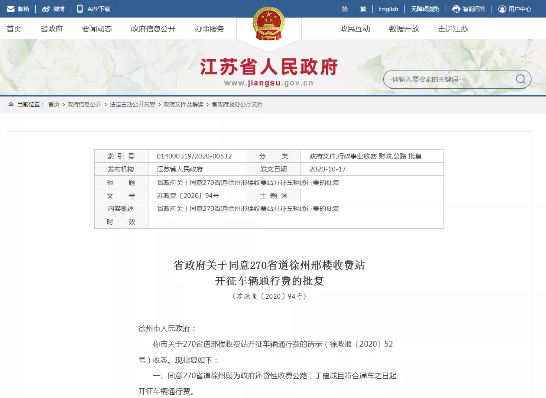 一、同意270省道徐州段為政府還貸性收費公路,于建成且符合通車之日起開征車輛通行費。