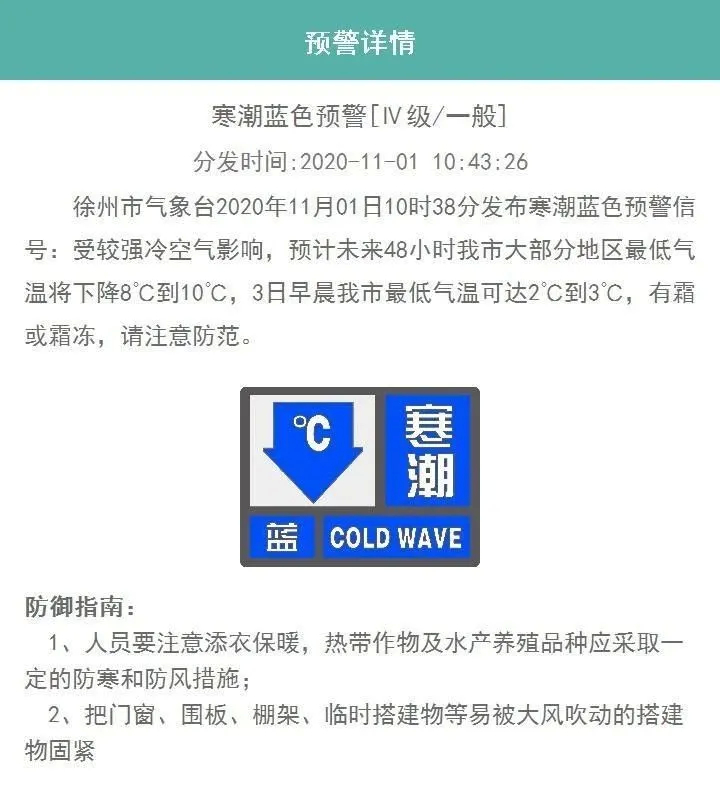 注意!周一上班遇見降溫!徐州氣象剛剛發(fā)布寒潮藍(lán)色預(yù)警!