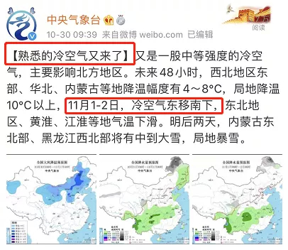 冷空氣就要東移南下了