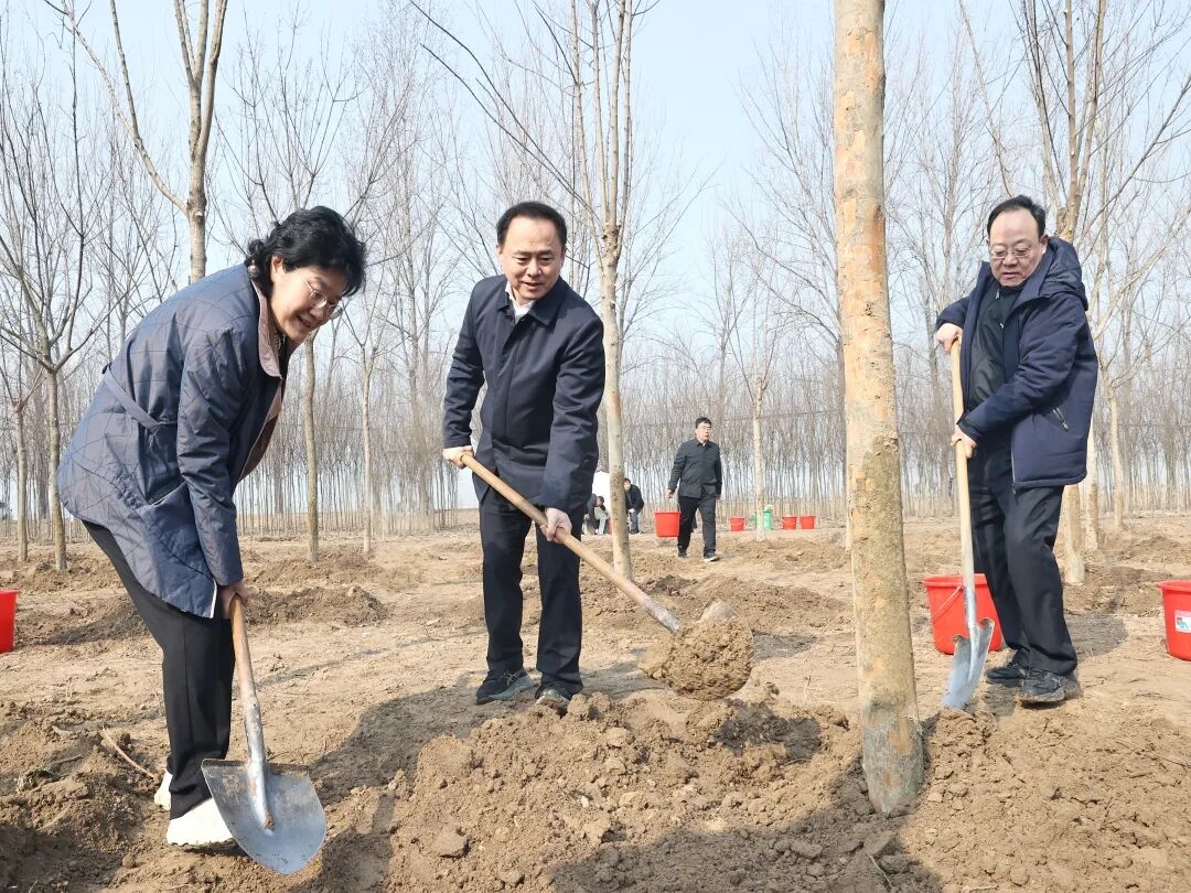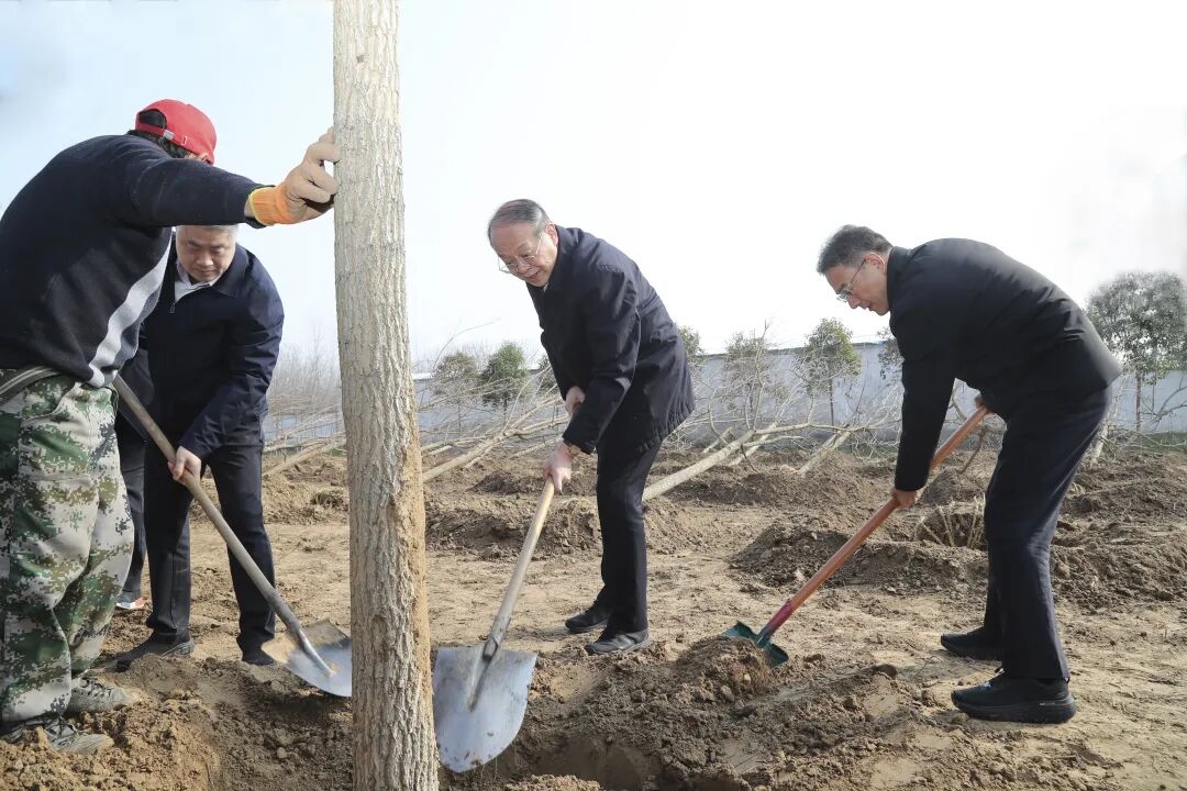 3月10日,市委書記宋樂偉,市委副書記、市長沈峻峰,市人大常委會主任王安順,市政協(xié)主席、市委副書記、政法委書記韓冬梅等市四套班子領(lǐng)導(dǎo)來到銅山區(qū)張集林場,與廣大干部群眾一起參加義務(wù)植樹活動,以實際行動踐行習(xí)近平生態(tài)文明思想,帶動全市上下持續(xù)開展造林綠化,共同繪就美麗徐州建設(shè)新畫卷。 春風(fēng)吐綠、萬物勃發(fā),正是植樹造林的好時節(jié)。宋樂偉、沈峻峰等來到植樹點,揮鍬鏟土、扶苗定植、培土圍堰、提水澆灌,有條不紊地完成每一道工序,接連種下三角楓、五角楓等樹苗,現(xiàn)場一派忙碌景象。植樹間隙,宋樂偉仔細(xì)詢問樹種習(xí)性、生長周期、養(yǎng)護(hù)要點等,詳細(xì)了解全市國土綠化情況,叮囑有關(guān)部門要堅持科學(xué)種植,加強養(yǎng)護(hù)管理,確保樹苗種植一片、成活一片、美化一片,著力營造愛綠植綠護(hù)綠興綠的濃厚氛圍。 活動中,宋樂偉指出,綠色發(fā)展是高質(zhì)量發(fā)展的底色。全市上下要牢固樹立綠水青山就是金山銀山理念,堅持?jǐn)U綠、興綠、護(hù)綠并舉,搶抓春季造林黃金時節(jié),因地制宜、科學(xué)綠化,優(yōu)選樹種、加強管護(hù),持續(xù)提升森林資源總量和質(zhì)量。要增強全民綠化意識,各級領(lǐng)導(dǎo)干部要率先垂范、身體力行,充分發(fā)揮林長制作用,有序推進(jìn)國土空間綠化,引導(dǎo)廣大干部群眾積極爭做生態(tài)文明建設(shè)的實踐者、推動者,不斷擦亮“一城青山半城湖”生態(tài)名片。 “十四五”期間,全市共完成造林面積26.99萬畝,其中凈增造林面積7.64萬畝,歷年造林面積居全省前列。2025年以來,我市調(diào)整優(yōu)化樹種結(jié)構(gòu),重點打造邳州銀杏時光隧道等森林步道,提檔升級主城區(qū)黃河故道綠色廊道沿線綠化,著力完善城市生態(tài)功能,持續(xù)推進(jìn)森林質(zhì)量提升。