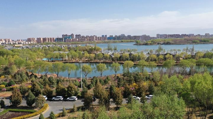 ↑甘肅省張掖市甘州區(qū)蘆水灣旅游度假區(qū)。新華社記者陳斌 攝
