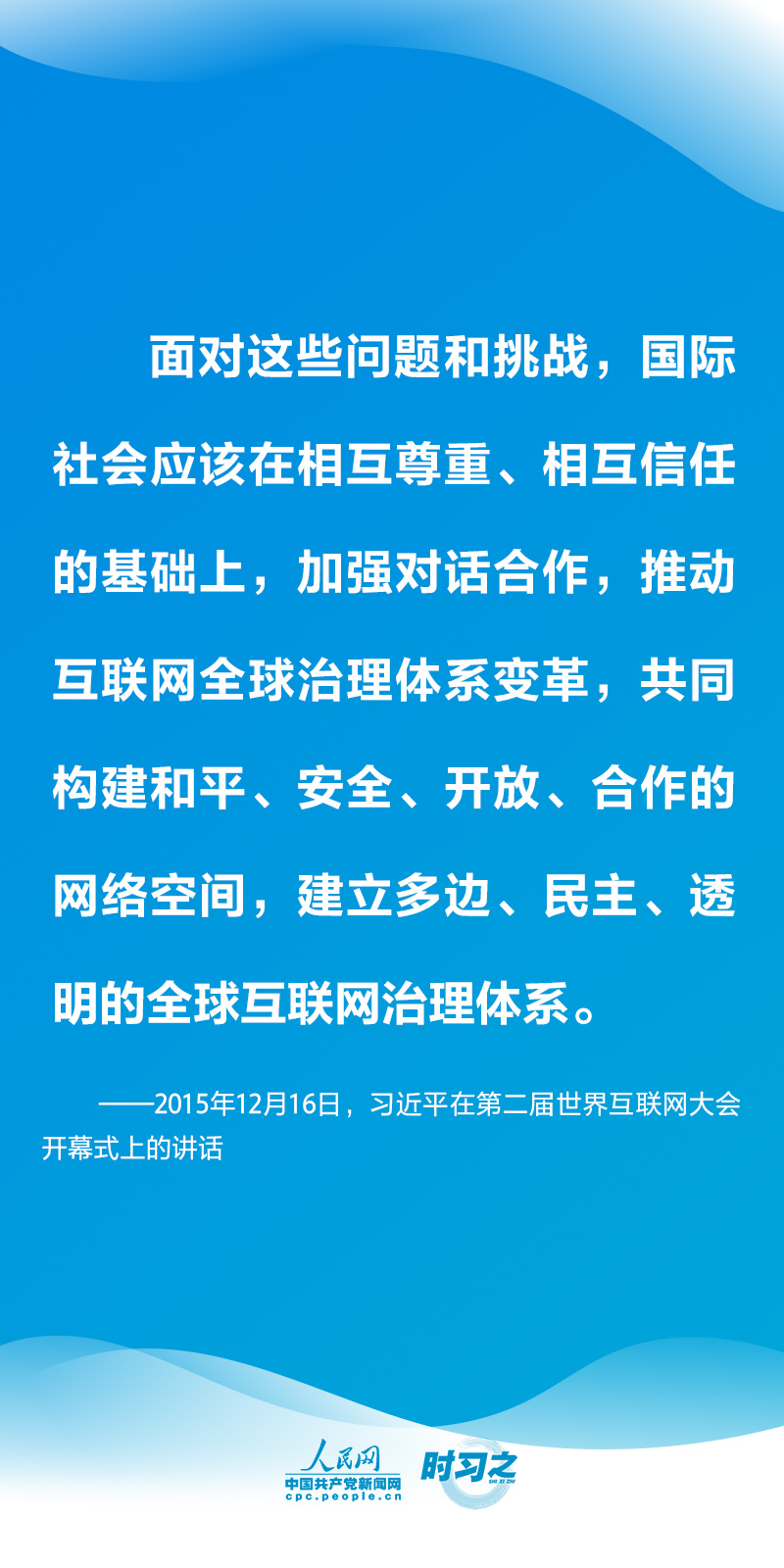“推進(jìn)全球互聯(lián)網(wǎng)治理體系變革是大勢所趨、人心所向?!苯陙?,從舉辦世界互聯(lián)網(wǎng)大會,到發(fā)布《網(wǎng)絡(luò)空間國際合作戰(zhàn)略》、發(fā)起《全球數(shù)據(jù)安全倡議》,中國順應(yīng)信息化時代的發(fā)展潮流,主動參與網(wǎng)絡(luò)空間國際治理進(jìn)程。國家主席習(xí)近平多次在不同場合闡釋互聯(lián)網(wǎng)發(fā)展治理的重大理論和實踐問題,為推動全球互聯(lián)網(wǎng)發(fā)展治理分享中國經(jīng)驗、貢獻(xiàn)中國智慧。