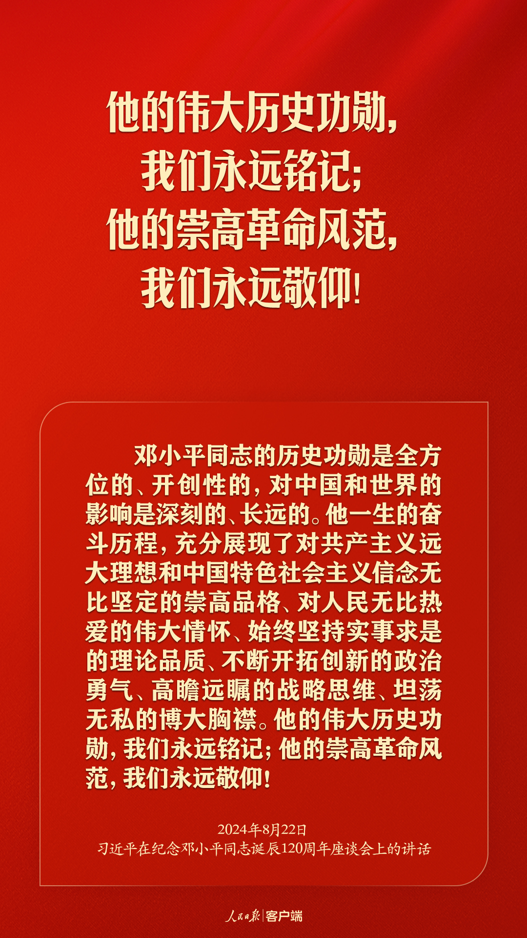 習(xí)近平:對(duì)鄧小平同志最好的紀(jì)念,就是把他開(kāi)創(chuàng)的中國(guó)特色社會(huì)主義事業(yè)繼續(xù)推向前進(jìn) 來(lái)源:人民日?qǐng)?bào)客戶(hù)端   編輯:彭城 ? 2024年08月23日 0 分享