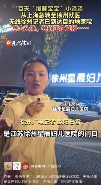 《百天“慢肺寶寶”小澤澤從上海急轉至徐州就醫(yī)》直播(2024年10月24日《徐州新聞視頻號》)