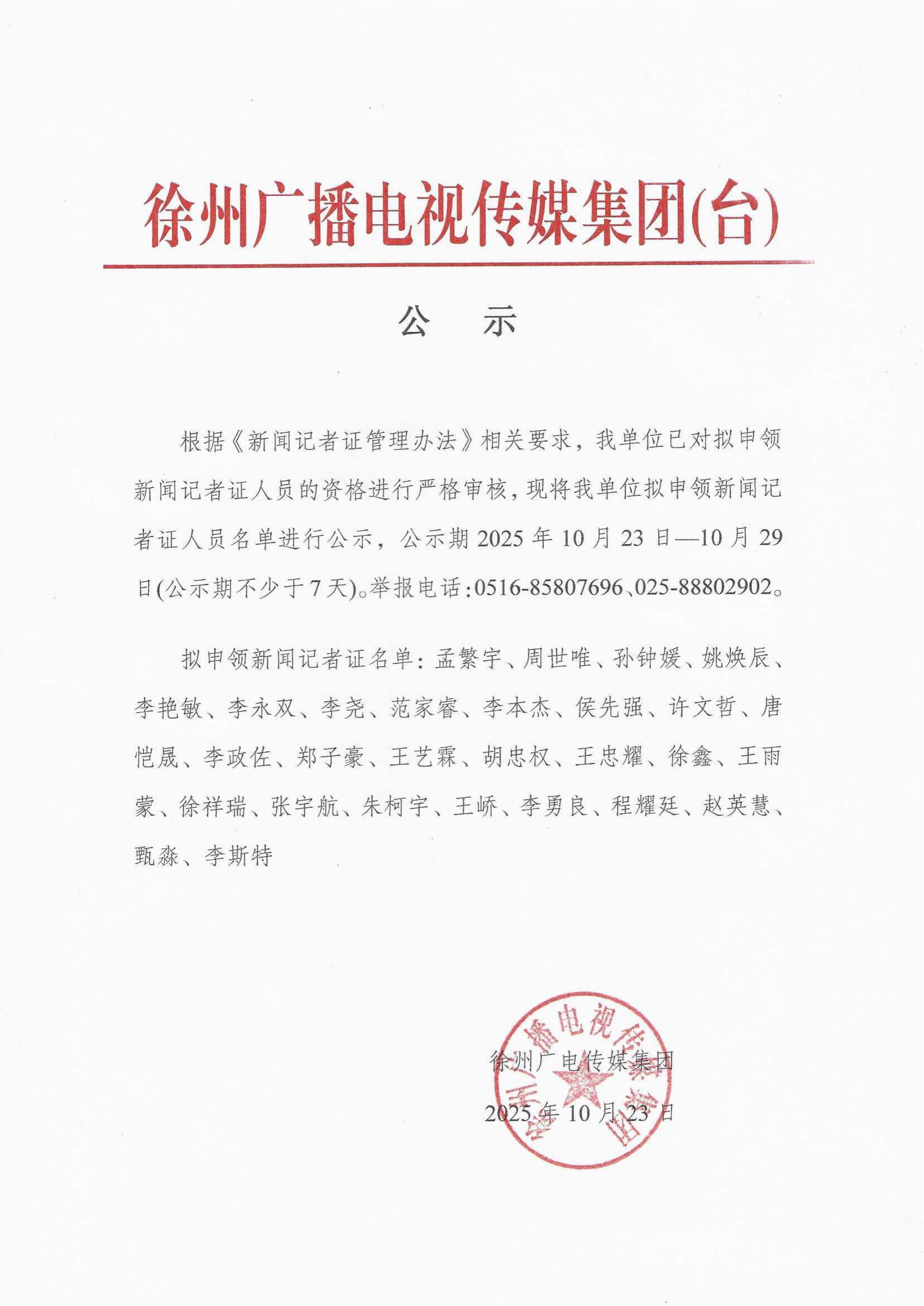 申領(lǐng)新聞記者證公示