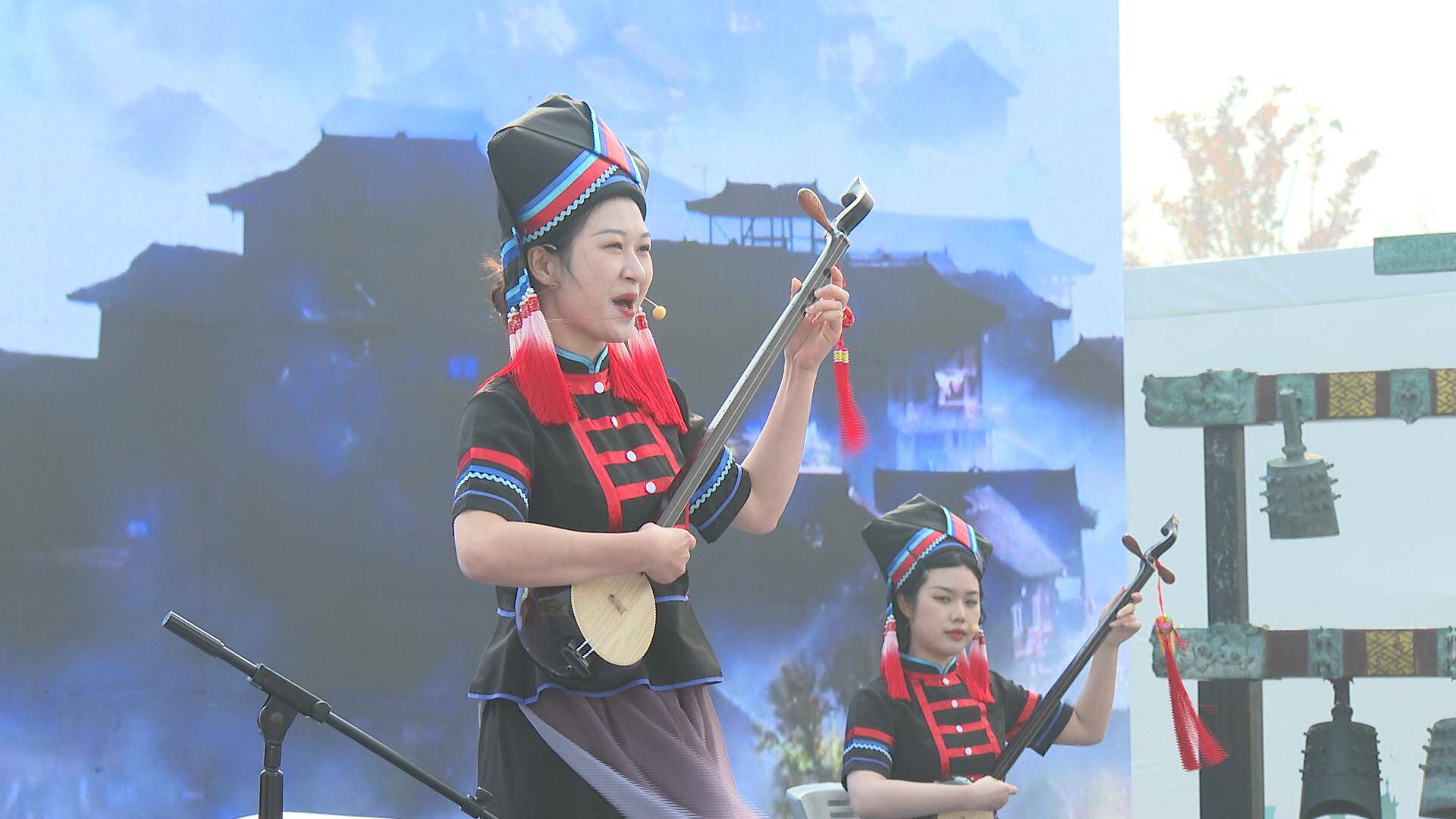 現(xiàn)場(chǎng),壯族音弦彈唱《唱天謠》以舞傳情、以歌會(huì)友,其伴奏樂(lè)器天琴是壯族古老的傳統(tǒng)民族樂(lè)器,音色圓潤(rùn)明亮,美妙動(dòng)人?!疤烨偈俏覀儔炎宸浅9爬系膫鹘y(tǒng)民族樂(lè)器,2021年,天琴就已經(jīng)被列入了非遺名錄當(dāng)中,我們希望通過(guò)節(jié)目能讓大家更多的了解我們的傳統(tǒng)樂(lè)器天琴?!蹦蠈幊鞘兄黝}周活動(dòng)表演者向記者介紹。