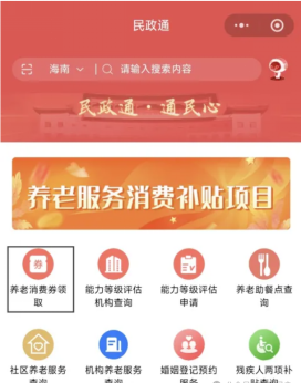 在App主頁面上,找到并點(diǎn)擊“養(yǎng)老消費(fèi)券領(lǐng)取”。