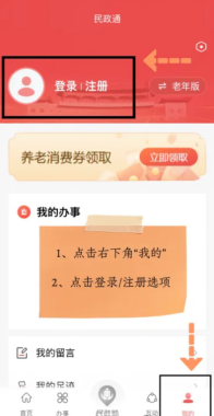 打開“民政通”App或小程序完成注冊(cè),成功登錄后,進(jìn)入主頁。
