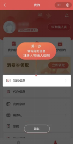 按要求準(zhǔn)確填寫“我的信息”“代辦信息”,完成信息填寫并提交后,點(diǎn)擊“切換人員”進(jìn)行切換。點(diǎn)擊“立即領(lǐng)取”即可領(lǐng)取消費(fèi)券。