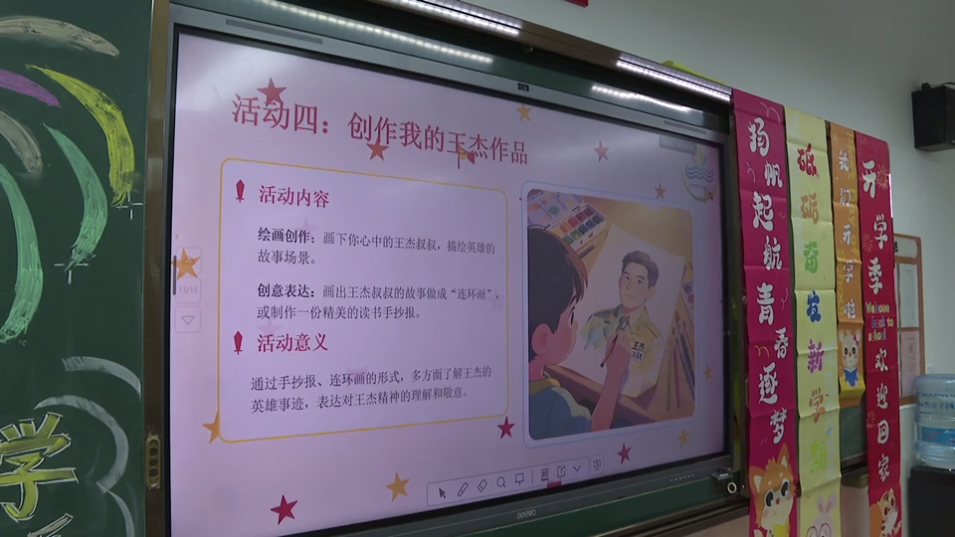 學(xué)生劉明澤告訴記者:“王杰是一位舍己為人、不怕困難、嚴(yán)格自律的人。今后我要向王杰學(xué)習(xí),在學(xué)習(xí)上刻苦努力,生活中樂于助人,做事認(rèn)真負(fù)責(zé)。”“我爸爸也是一名軍人,我要把軍人認(rèn)真、自律、堅持的好習(xí)慣帶到學(xué)校里,努力成長為一名講紀(jì)律、愛學(xué)習(xí)、有擔(dān)當(dāng)?shù)膬?yōu)秀少先隊員?!睂W(xué)生李潤杰的父親也是一名軍人,在家庭的熏陶下,紅色基因早已在心中生根發(fā)芽。