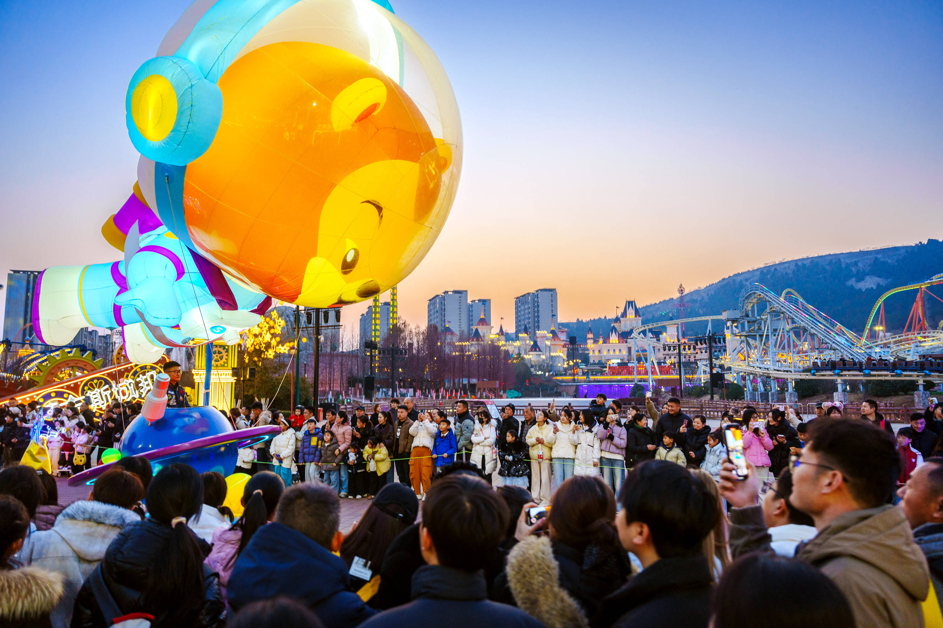 節(jié)日期間,徐州五園同樂。徐州樂園每天上演近30場(chǎng)演出,涵蓋非遺、歌舞、無人機(jī)秀、城堡光影秀;徐州園博園新春大廟會(huì)主打非遺活態(tài)傳承,英歌舞、儺戲與NPC互動(dòng)碰撞出拍照“名場(chǎng)面”。