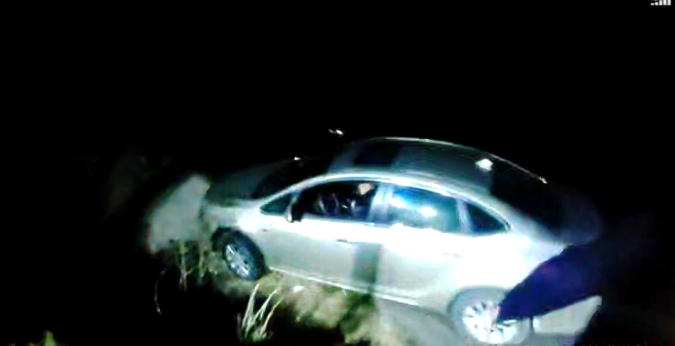 驚險!深夜轎車懸空險墜溝,警民合力化險情