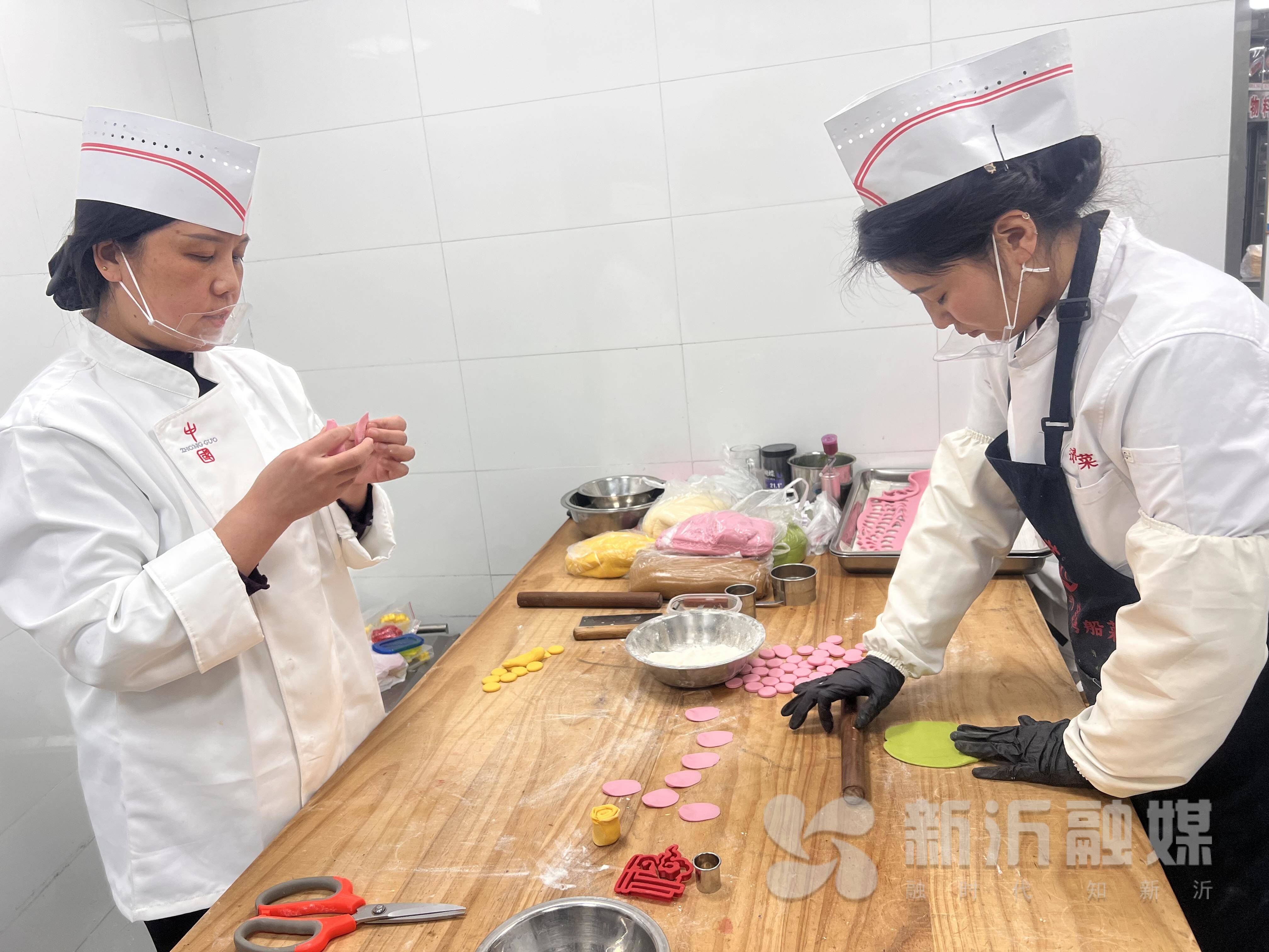 “船點,是古代船娘在運河上制作、售賣的點心,常用澄面捏出小兔子、小桃子等造型。我們將船點的工藝特點融入花饃制作,形成了窯灣船菜花饃的獨特風(fēng)格?!睏铥慃愡M(jìn)一步解釋道。