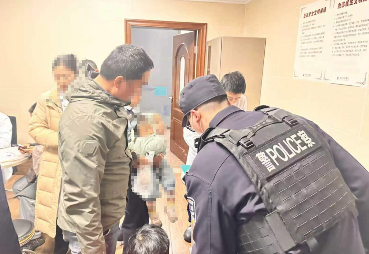 民警抱著孩子沖向急診室: