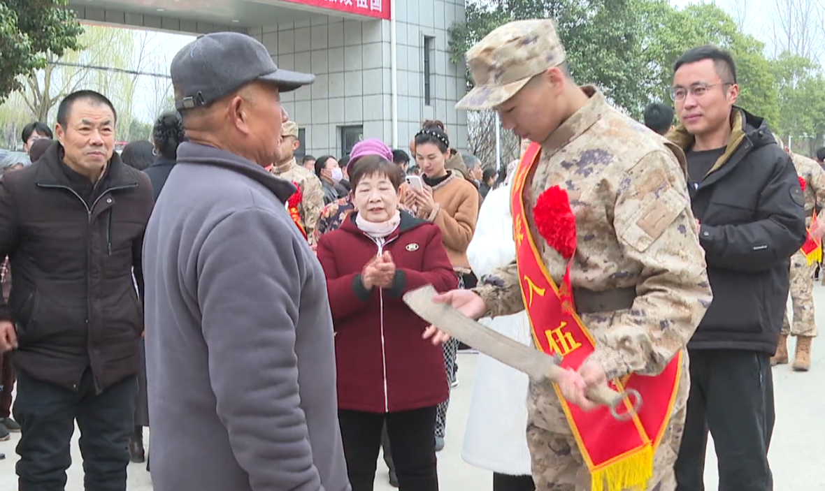 日前,沛縣舉行2026年上半年新兵入伍歡送暨立功受獎軍人家庭喜報集中慶送儀式。歡送現(xiàn)場,新兵周軒宇的爺爺將一把軍刀鄭重交到孫子手中,以特殊的方式傳遞報國初心。
