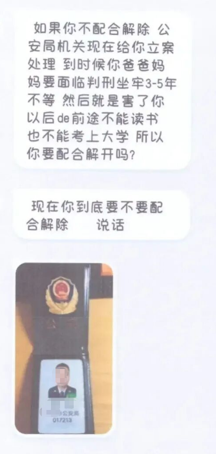 反復(fù)強調(diào)案件“涉密”,要求玩家不得告知家長、老師,不得撥打110報警,不得向他人透露相關(guān)情況,隔絕玩家求助渠道,便于其持續(xù)實施詐騙。