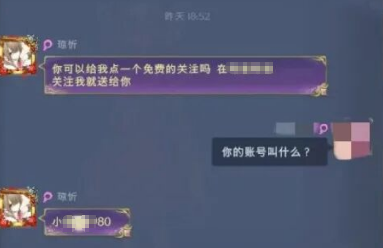 騙子混在游戲大廳、玩家群、直播彈幕中,發(fā)布“免費領(lǐng)稀有裝備”“游戲賬號異常需核驗”“內(nèi)部福利通道”等虛假信息,孩子一上鉤,就被要求添加私人社交賬號,脫離官方平臺。