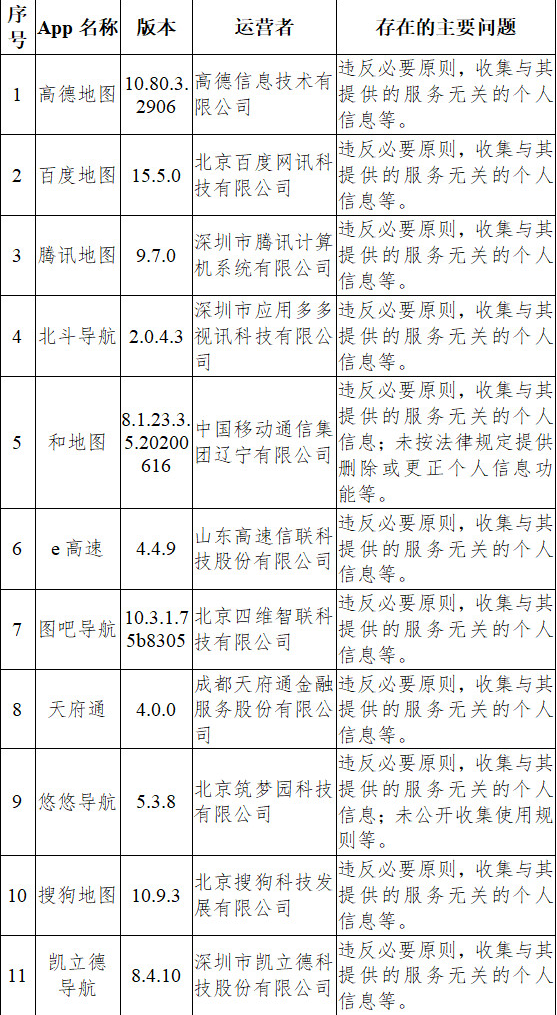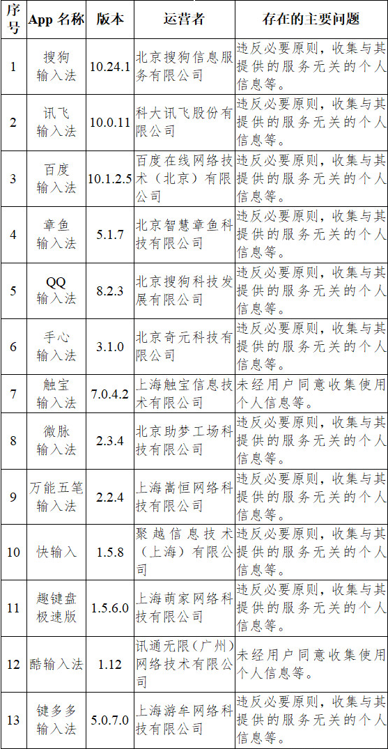 近期,針對人民群眾反映強烈的App非法獲取、超范圍收集、過度索權(quán)等侵害個人信息的現(xiàn)象,國家互聯(lián)網(wǎng)信息辦公室依據(jù)《中華人民共和國網(wǎng)絡(luò)安全法》《App違法違規(guī)收集使用個人信息行為認定方法》等法律和有關(guān)規(guī)定,組織對輸入法、地圖導(dǎo)航等常見類型公眾大量使用的部分App的個人信息收集使用情況進行了檢測?,F(xiàn)將有關(guān)情況通報如下: