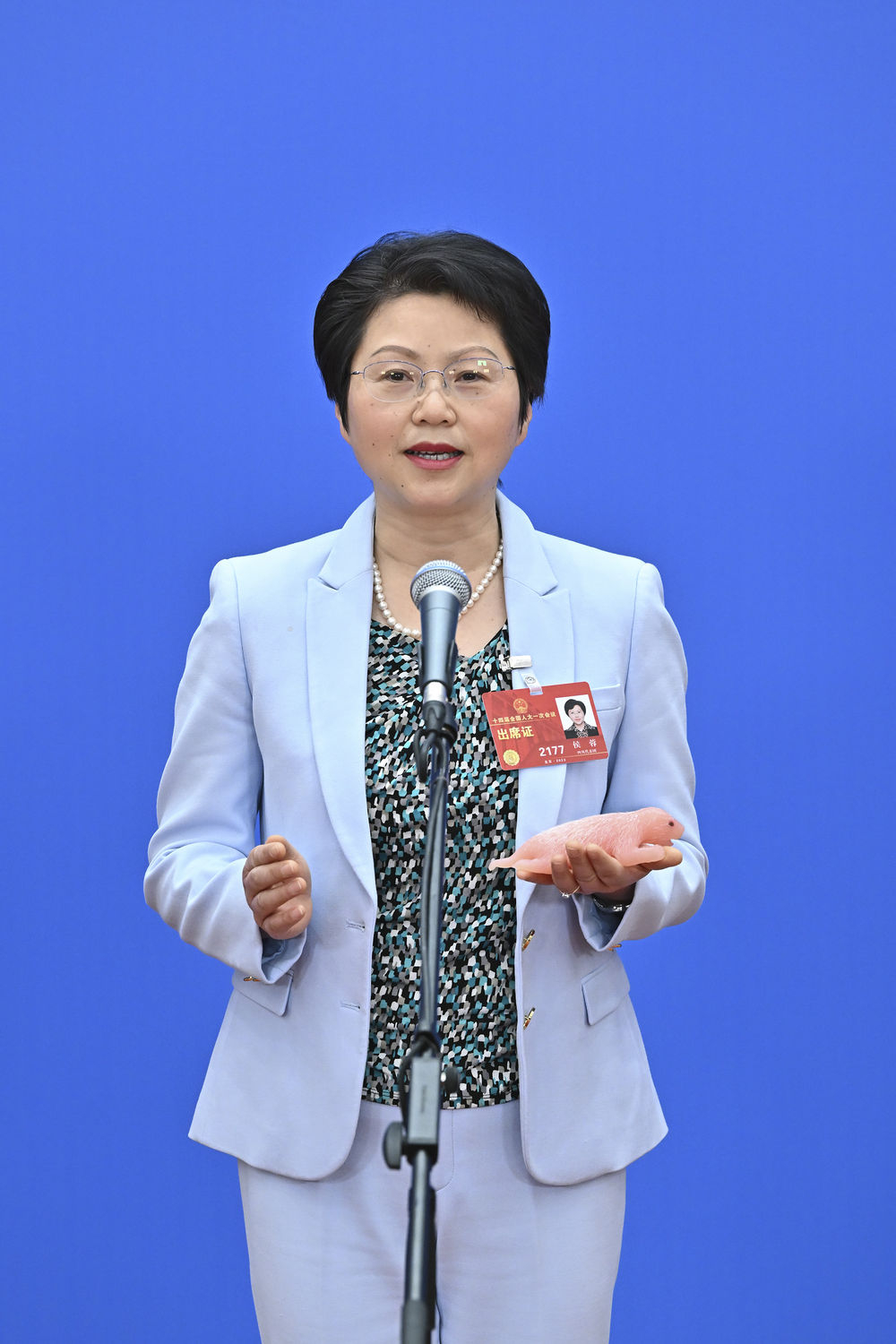 ↑這是全國(guó)人大代表侯蓉接受媒體采訪。新華社記者 劉金海 攝