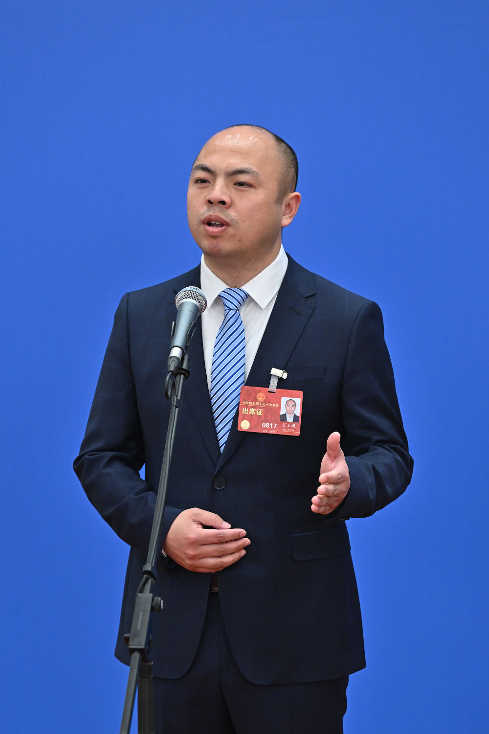 ↑這是全國(guó)人大代表汪玉成接受媒體采訪。新華社記者 劉金海 攝