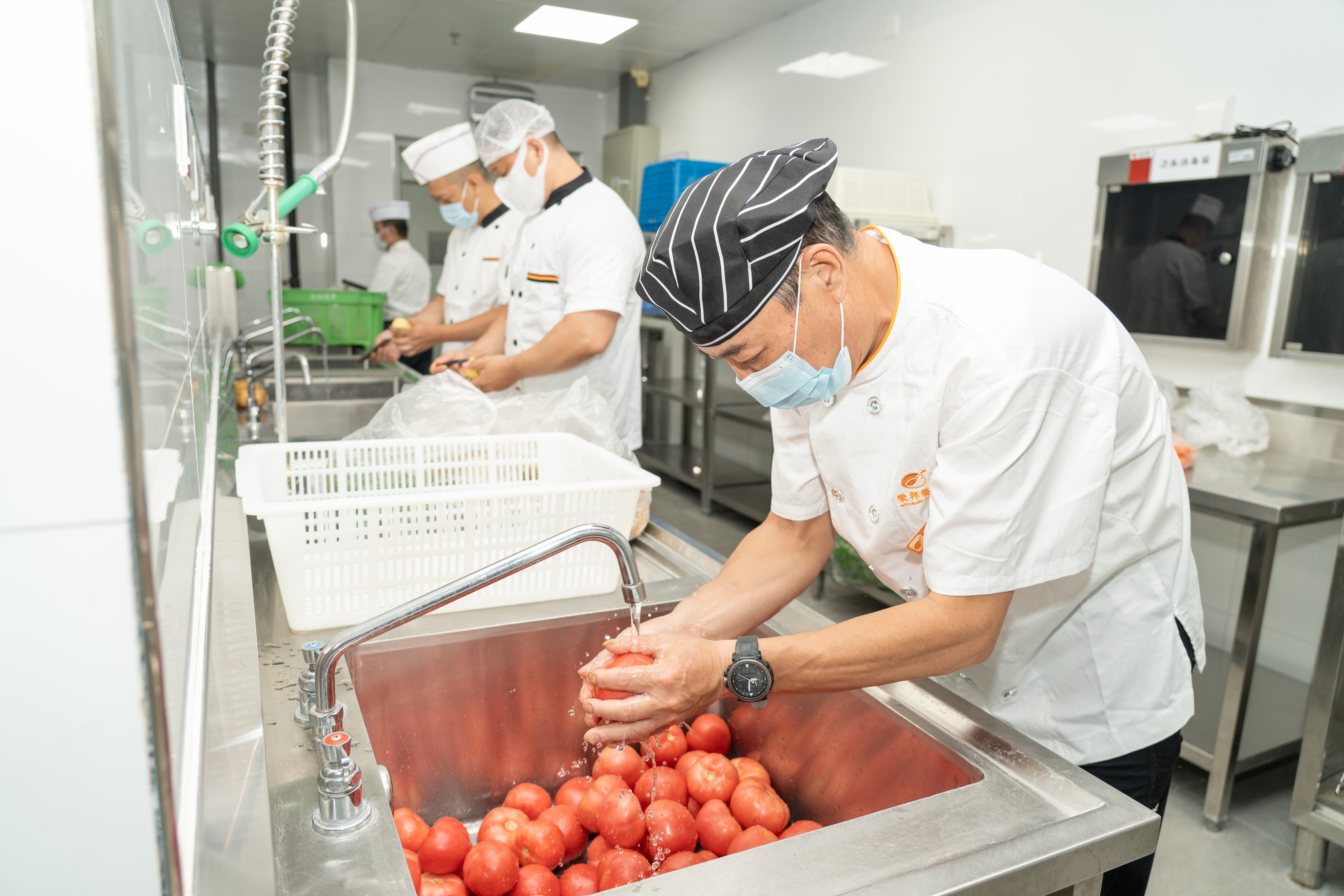 新學(xué)期臨近,各地各校針對(duì)新學(xué)期的相關(guān)培訓(xùn)也在推進(jìn)中。土豆燒牛肉、清炒蝦仁、番茄炒雞蛋……8月21日,南京市中華中學(xué)雨花校區(qū)食堂內(nèi),20名來自南京各區(qū)各直屬學(xué)校的廚師正在操作間里忙碌著,洗菜、切菜、炒菜一氣呵成。這些廚師就是參加南京市學(xué)校食品安全管理與營(yíng)養(yǎng)培訓(xùn)班的部分代表。理論學(xué)習(xí)結(jié)束后,廚師們分組進(jìn)行廚藝大比拼?!敖裉焓恰鲱}作文’,20名大廚被分為A、B兩組,同臺(tái)競(jìng)技,都是做土豆燒牛肉、清炒蝦仁、番茄炒雞蛋、清炒空心菜這四種家常菜,這也是平時(shí)學(xué)校做得比較多的菜,跟平時(shí)一樣,每組廚師大鍋制作?!蹦暇┦兄行W(xué)衛(wèi)生保健所副所長(zhǎng)馬萍說。完成后,參加培訓(xùn)的所有學(xué)員以及學(xué)生代表從色、香、味、搭配、營(yíng)養(yǎng)等方面進(jìn)行打分,并當(dāng)場(chǎng)揭曉結(jié)果?!巴炼篃跖H馐紫纫茸⒁饪厮?,最關(guān)鍵的是火候,全程小火燉一個(gè)半小時(shí),肉就軟糯,不柴?!敝腥A中學(xué)雨花校區(qū)食堂廚師長(zhǎng)周本良說。